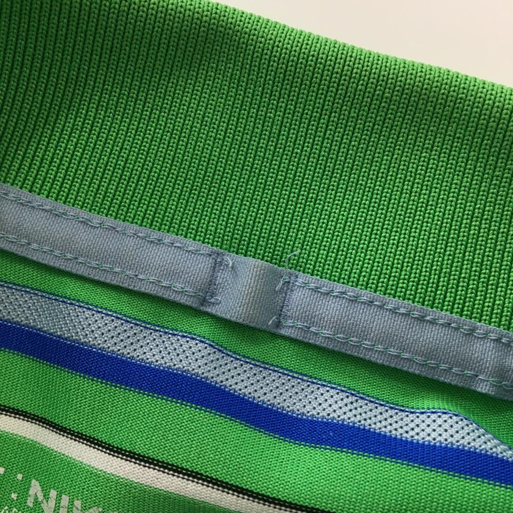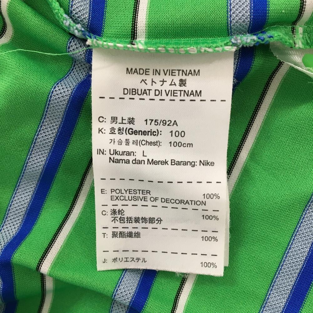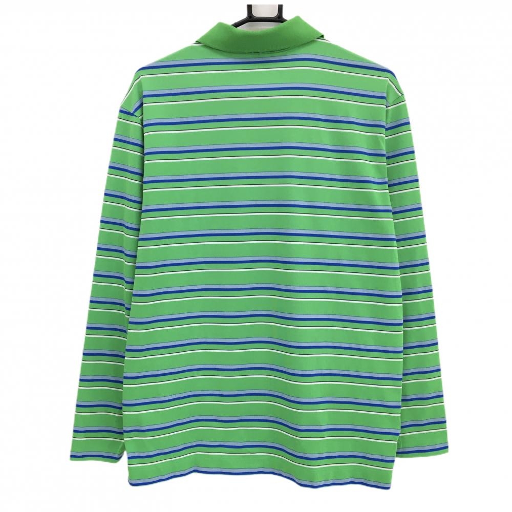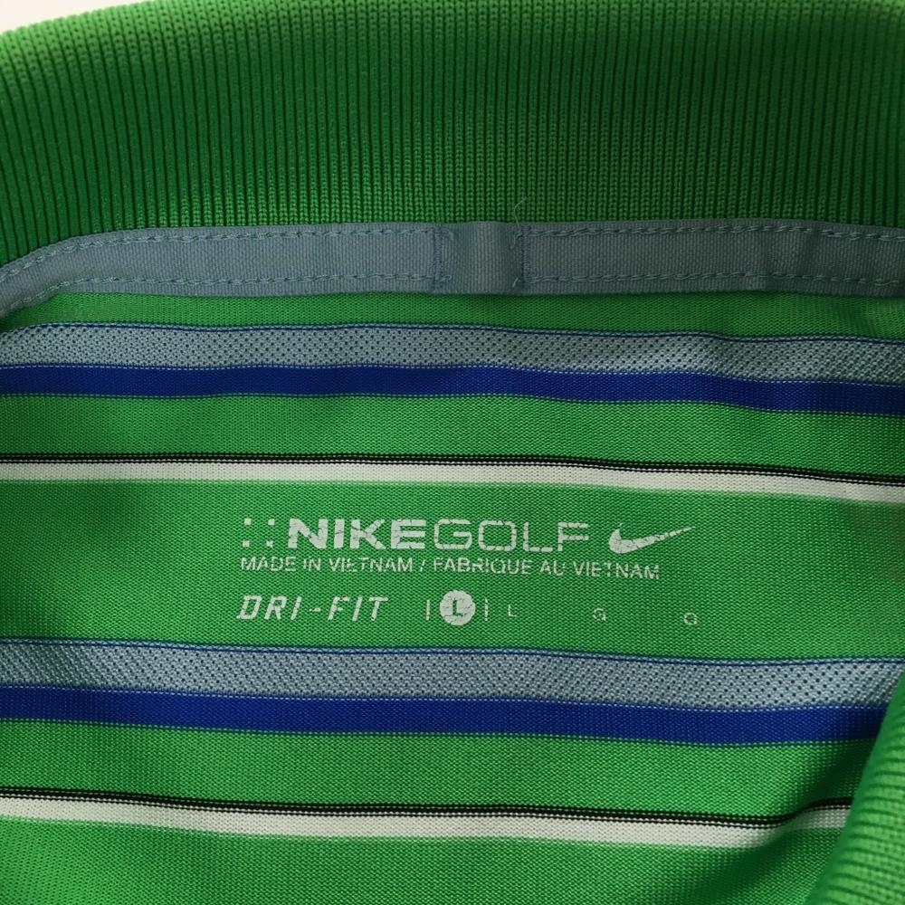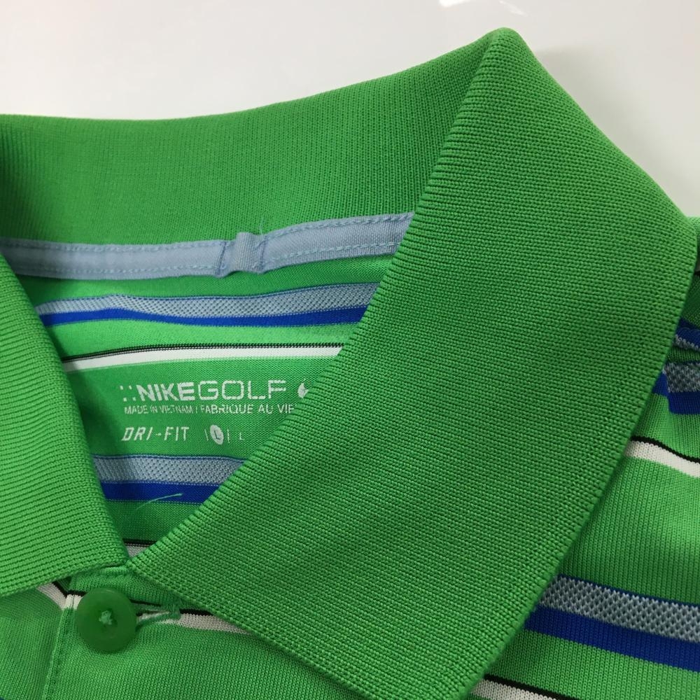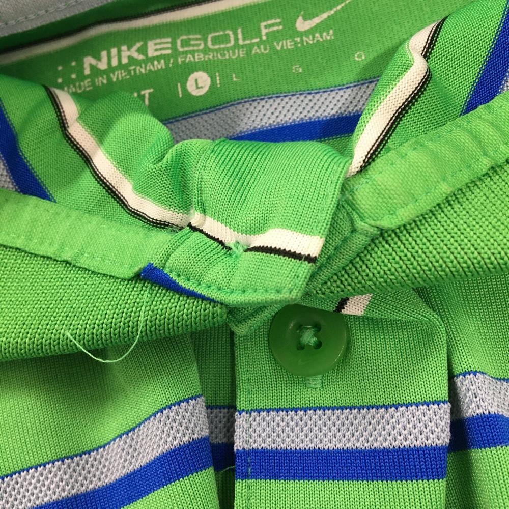 ナイキゴルフ 長袖ポロシャツ ライトグリーン×ブルー ボーダー ロゴ刺しゅう DRI-FIT メンズ L ゴルフウェア NIKE