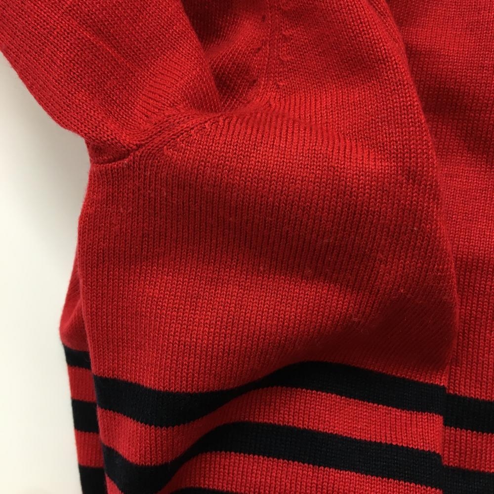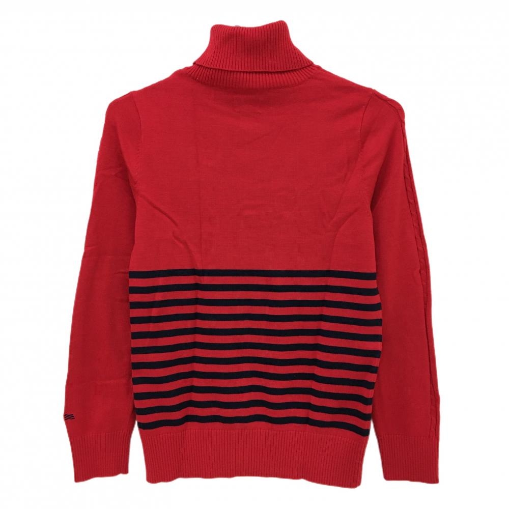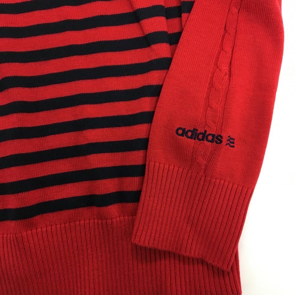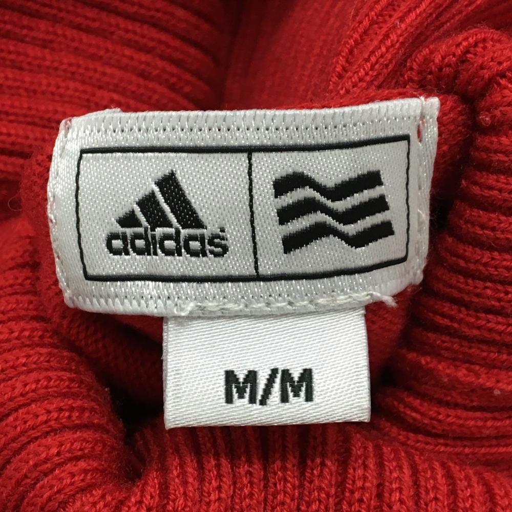 【美品】アディダス タートルネックセーター レッド×黒 一部ボーダー 袖一部ケーブル編み レディース M/M ゴルフウェア adidas
