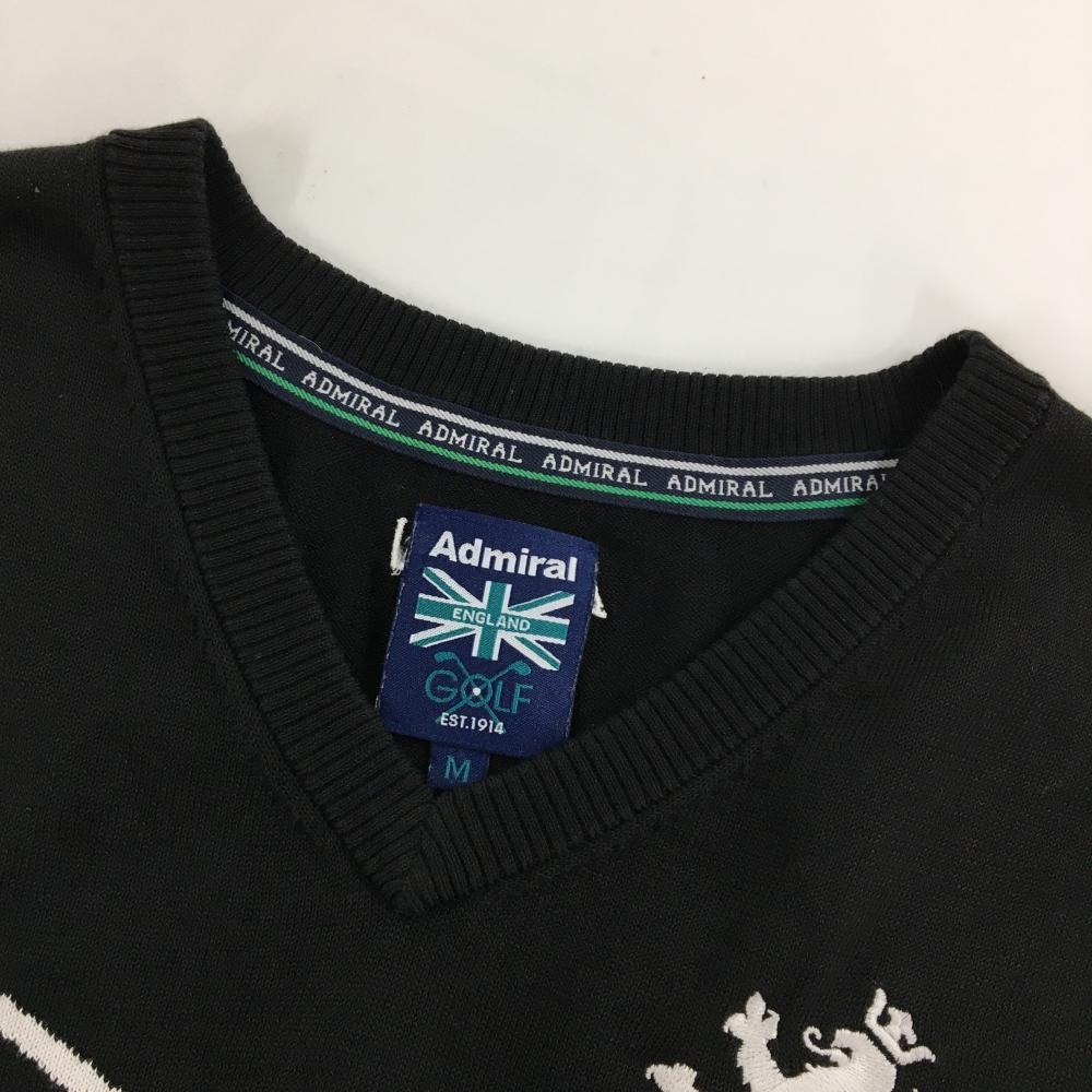 アドミラル ベスト 黒×ブルー×白 前面ライン交差柄 コットン混 メンズ M ゴルフウェア Admiral