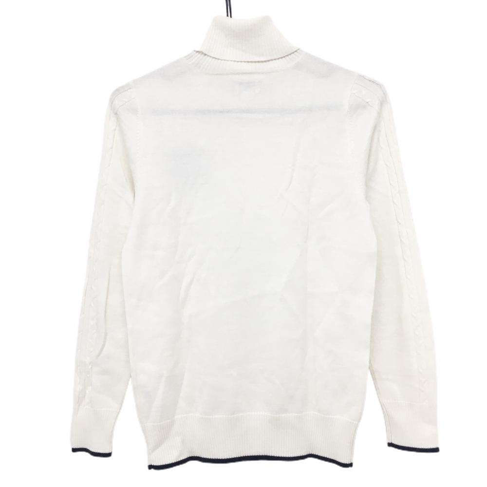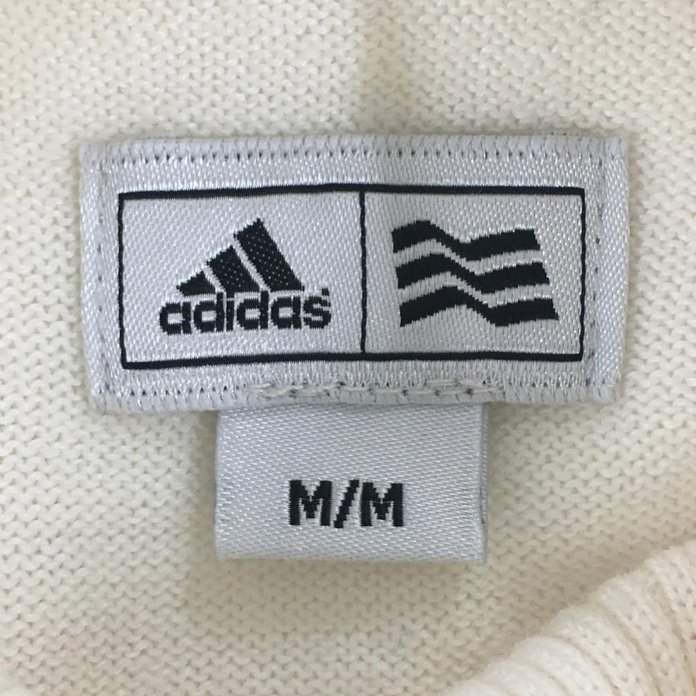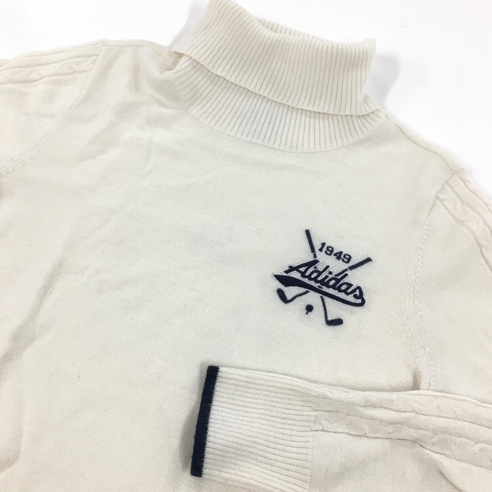 【超美品】アディダス タートルネックセーター 白×ネイビー 袖ケーブル編み ロゴ刺しゅう ウール混 レディース M/M ゴルフウェア adidas