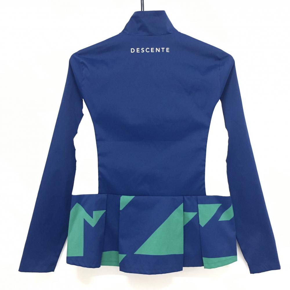 【超美品】デサントゴルフ ジャケット ネイビー×グリーン サイドメッシュ調 裾後ろプリーツ レディース M ゴルフウェア DESCENTE