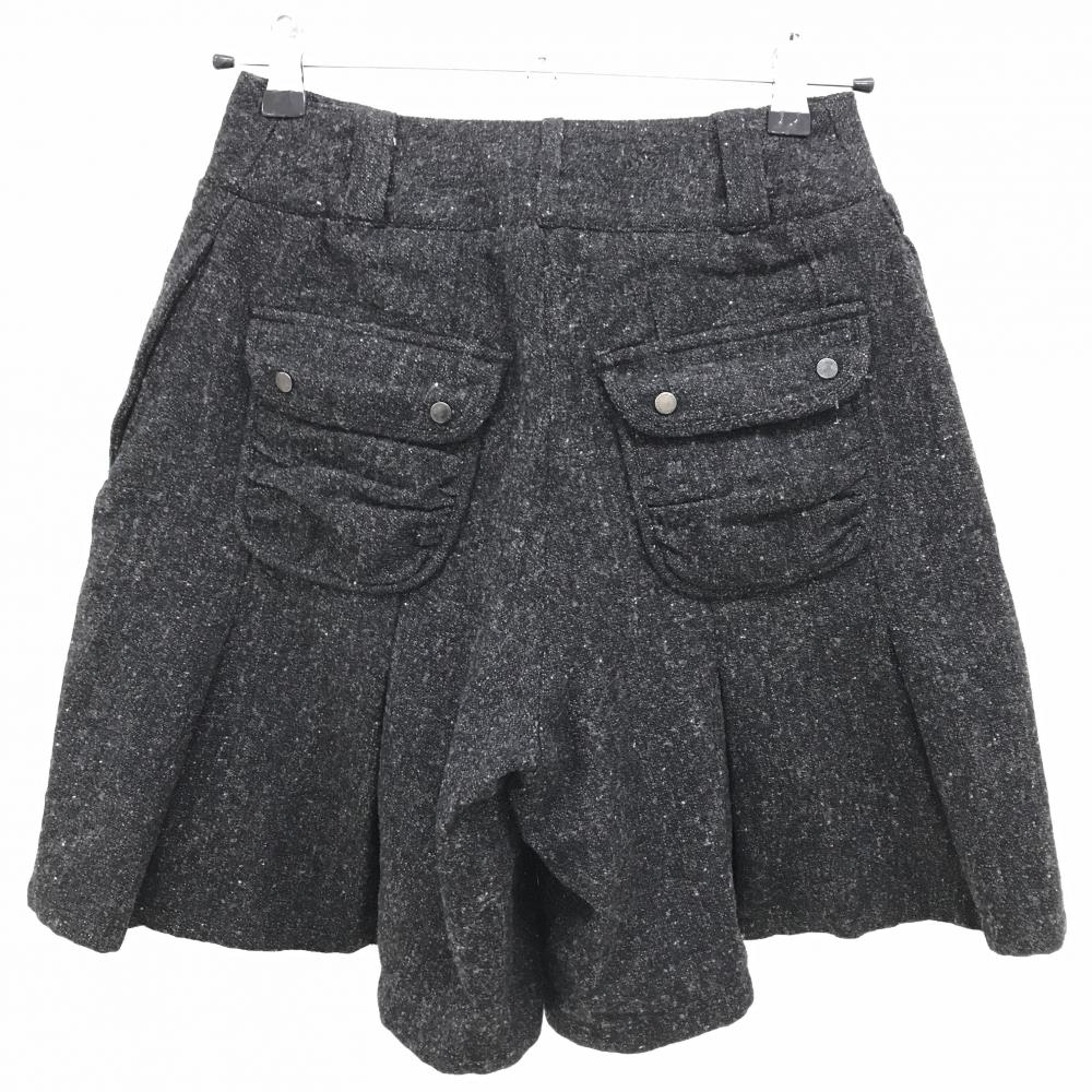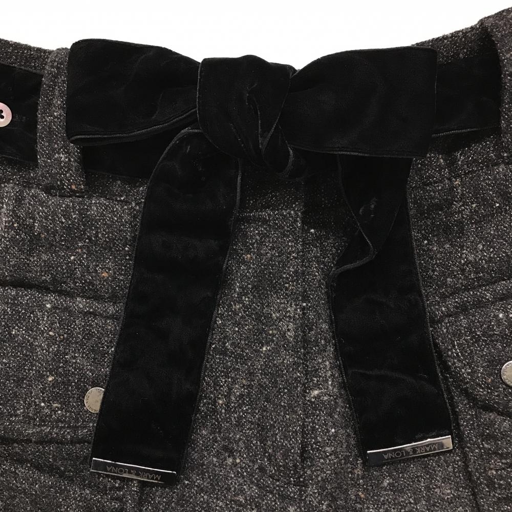 【美品】マークアンドロナ キュロットスカート 杢ダークグレー 微起毛素材 ベロアリボン レディース M ゴルフウェア MARK&LONA