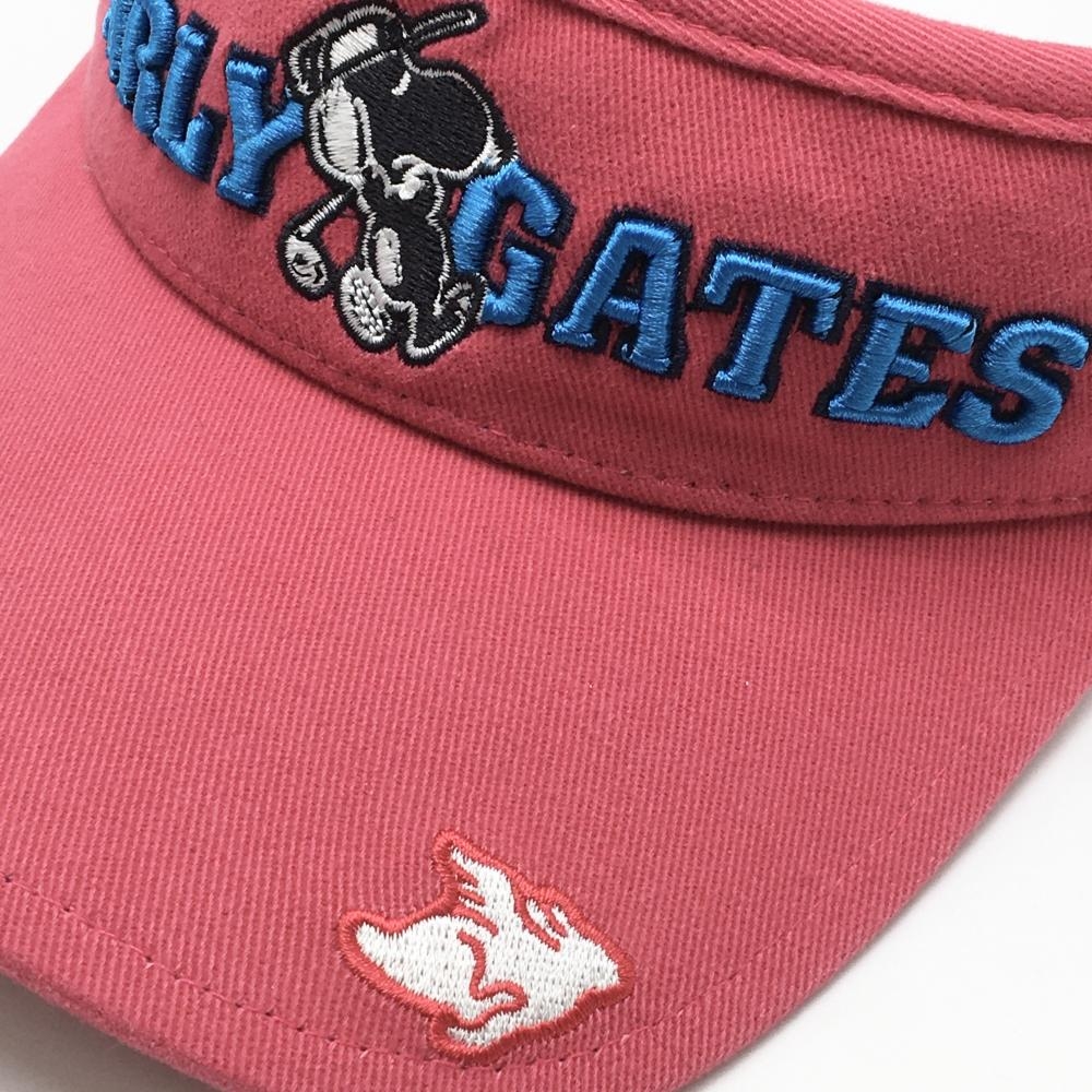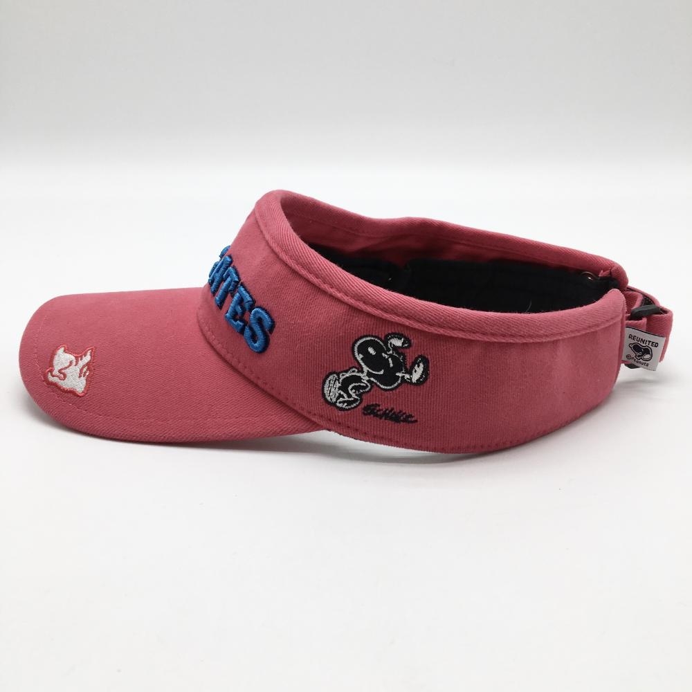 【美品】パーリーゲイツ×PEANUTS サンバイザー ピンク×ブルー スヌーピー 立体ロゴ FR ゴルフウェア PEARLY GATES