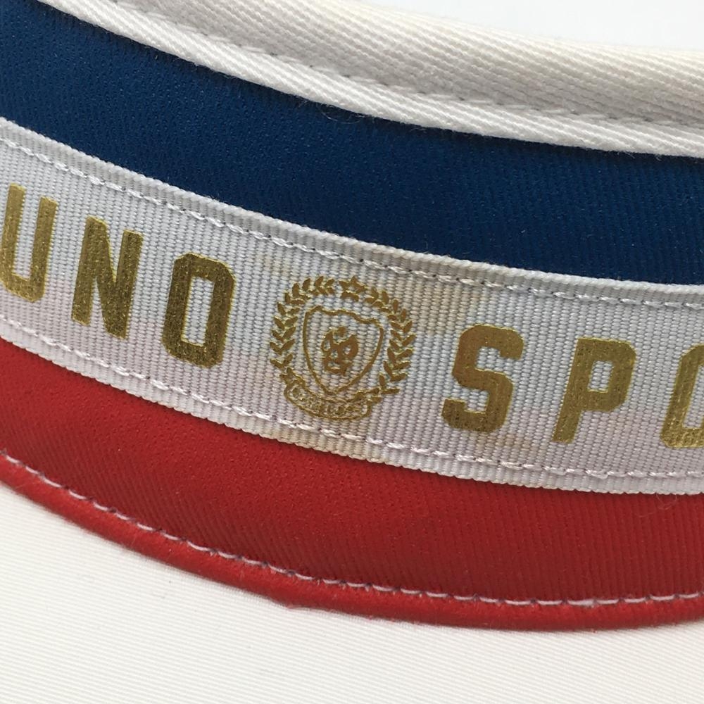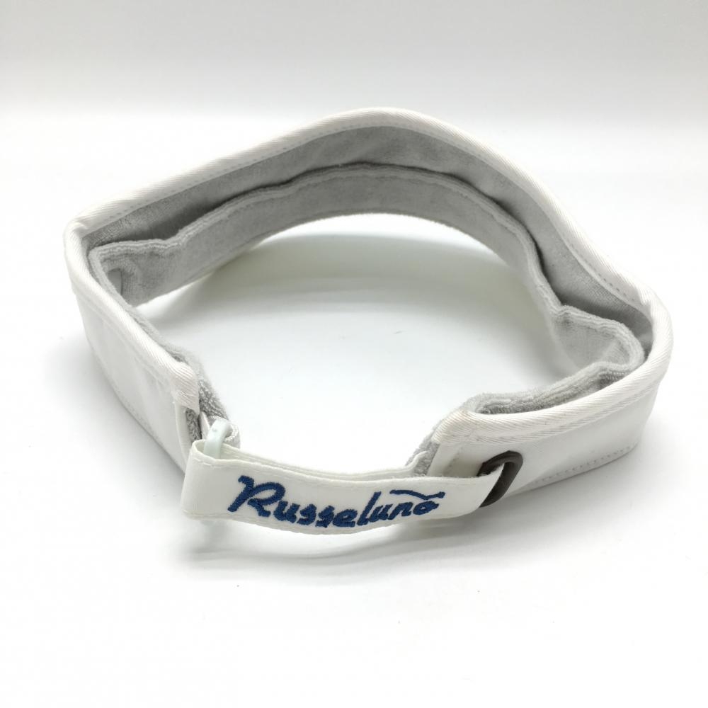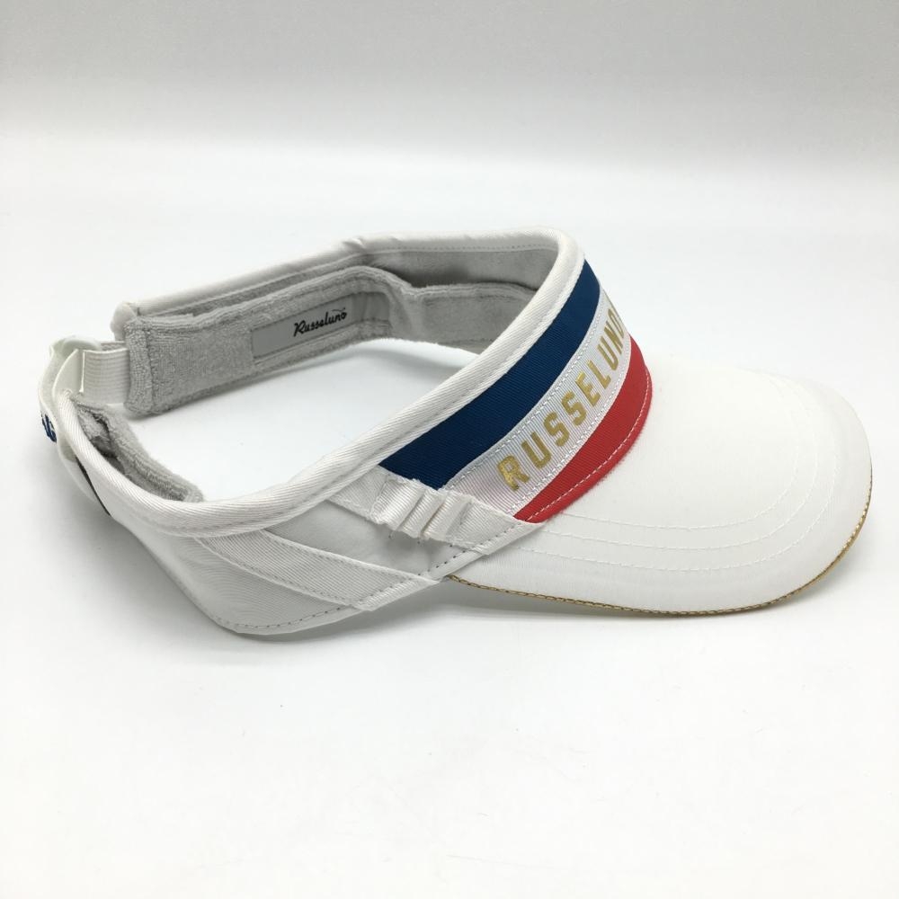 【美品】ラッセルノ サンバイザー 白 ロゴゴールド F ゴルフウェア RUSSELUNO