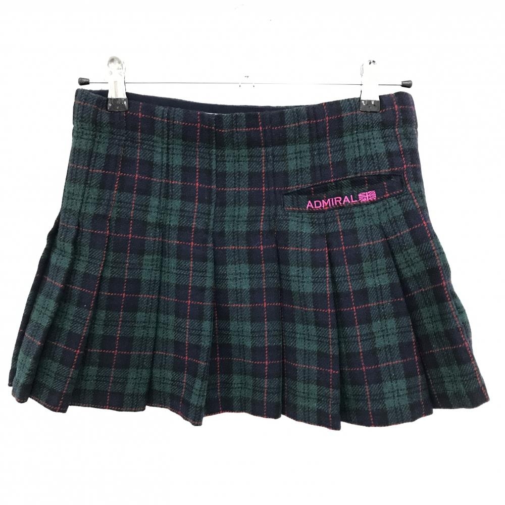 【超美品】アドミラル ウール巻きスカート ネイビー×グリーン チェック ロゴワッペン 裏地付き レディース S ゴルフウェア Admiral