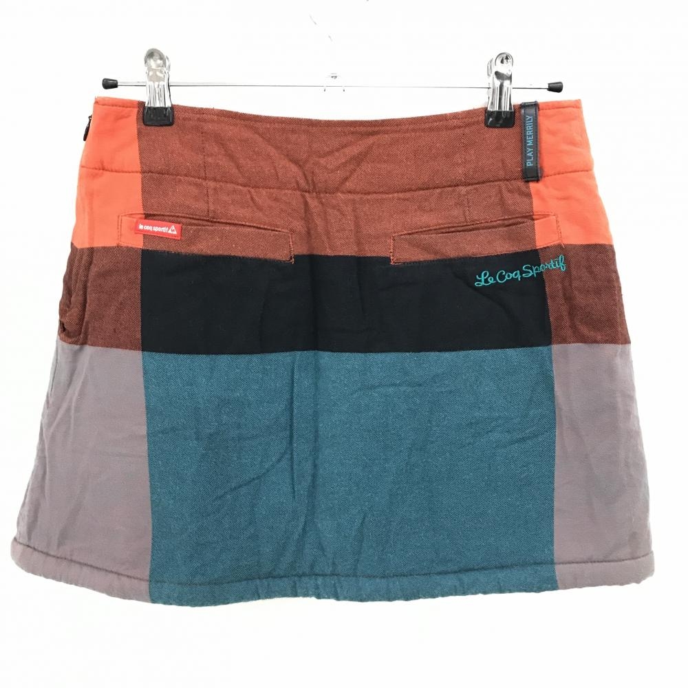 ルコックゴルフ スカート ライトブルー×オレンジ×黒 裏ボア レディース 9 ゴルフウェア le coq sportif