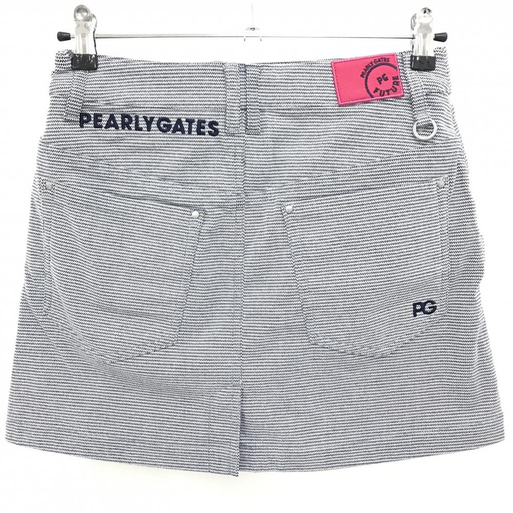 【超美品】パーリーゲイツ スカート ネイビー×白 細ギザギザボーダー 表微起毛 ストレッチ レディース 0(S) ゴルフウェア PEARLY GATES