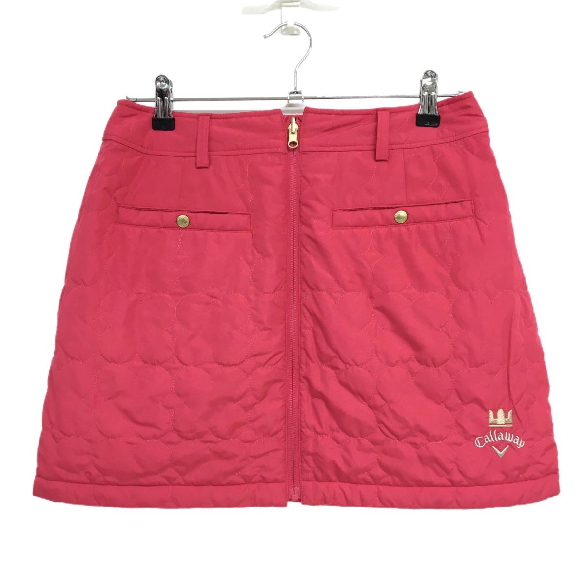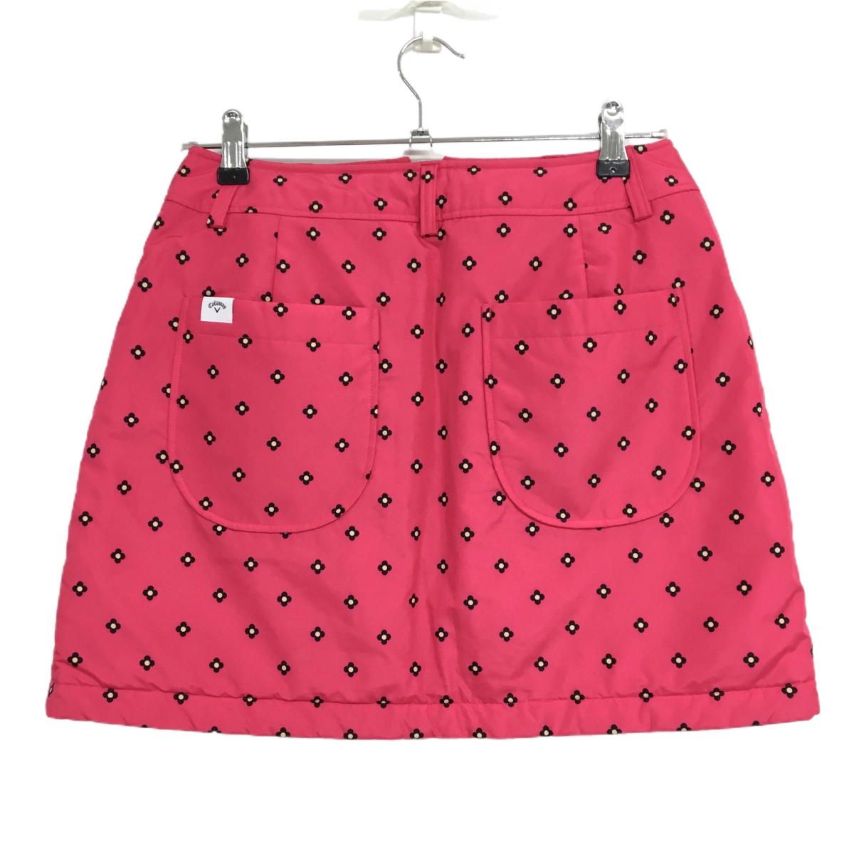 【超美品】キャロウェイ 中綿リバーシブルスカート ピンク×黒 花柄 裏キルティング レディース L ゴルフウェア Callaway