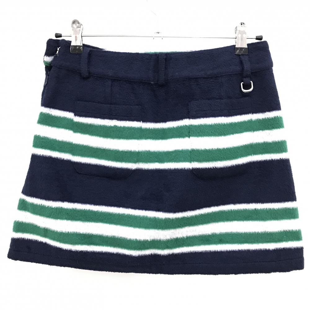 デルソル スカート ネイビー×グリーン×白 ボーダー風 起毛 レディース M ゴルフウェア DELSOL