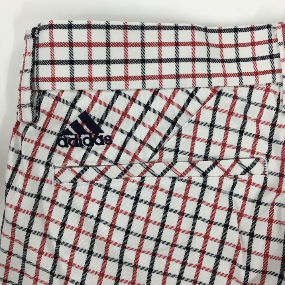 【美品】アディダス パンツ 白×レッド×黒 格子柄 メンズ 82 ゴルフウェア adidas