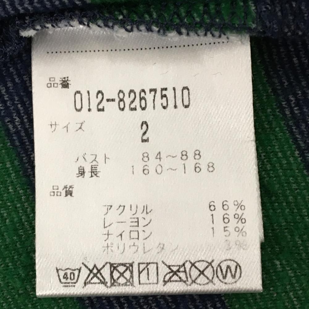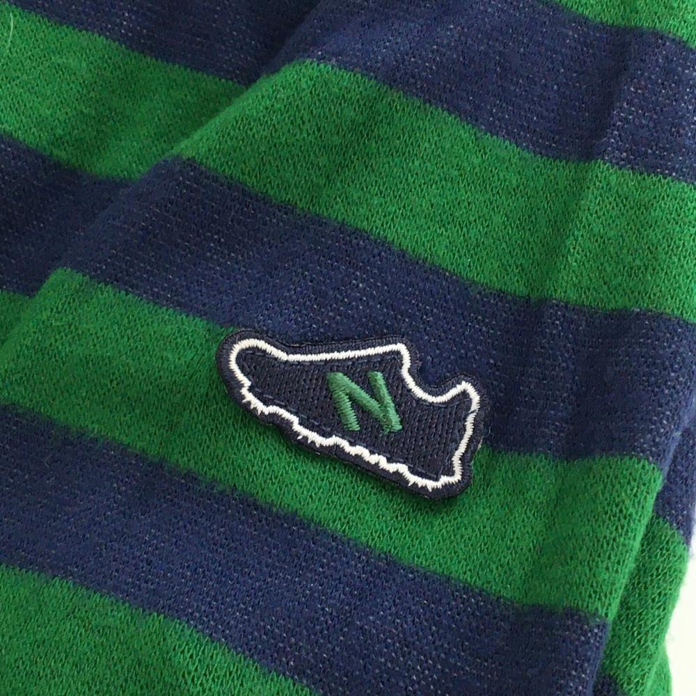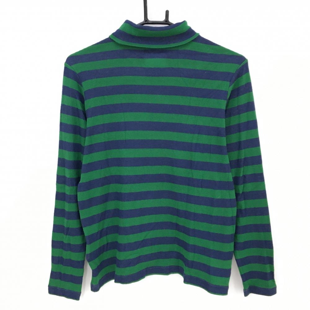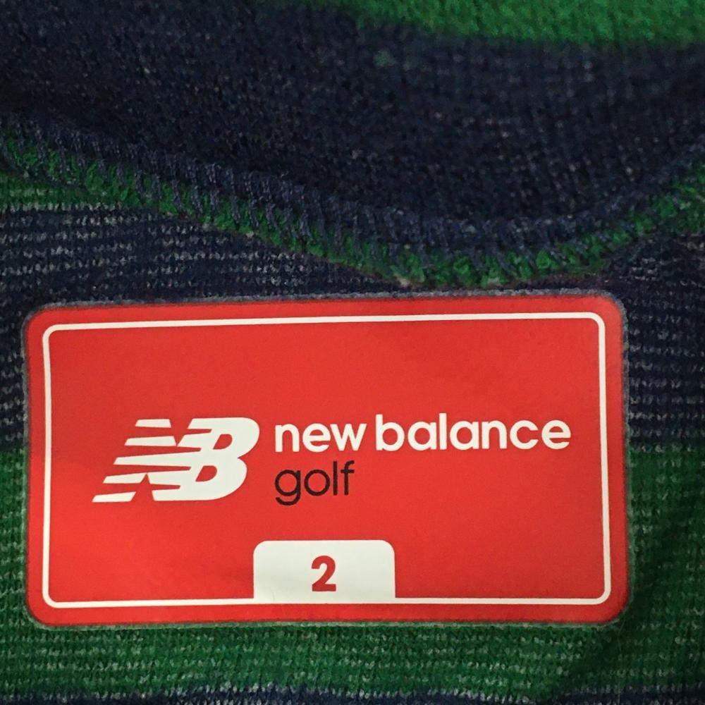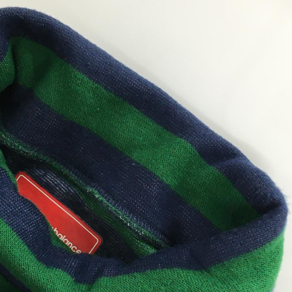 【美品】ニューバランスゴルフ 長袖タートルネックシャツ ネイビー×グリーン ボーダー 表起毛 レディース 2(L) ゴルフウェア New Balance