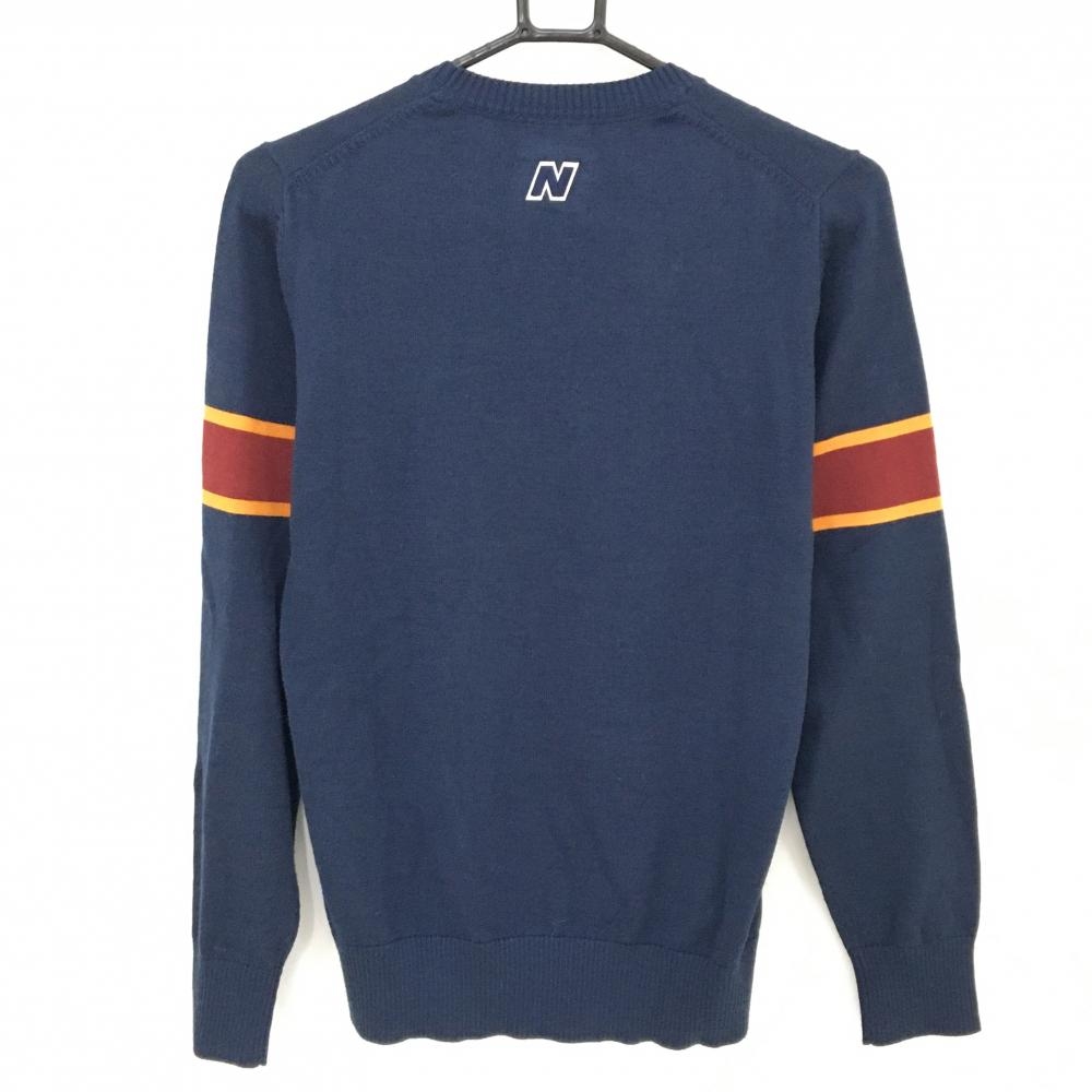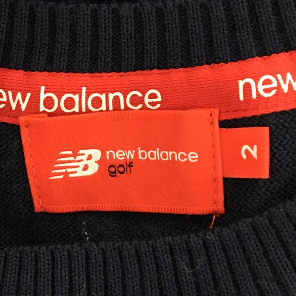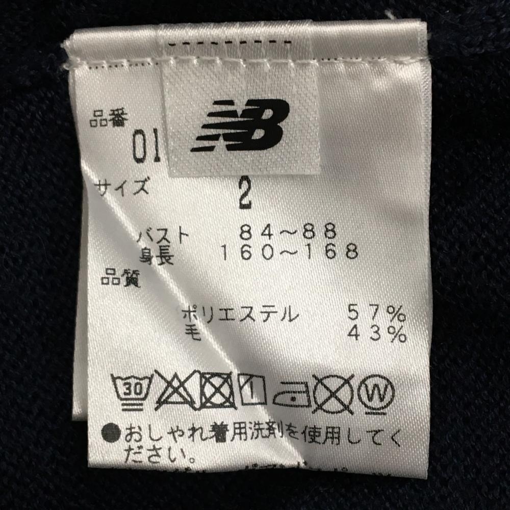 【超美品】ニューバランスゴルフ セーター ネイビー ロゴ白 ウール混 ニット レディース 2(L) ゴルフウェア New Balance
