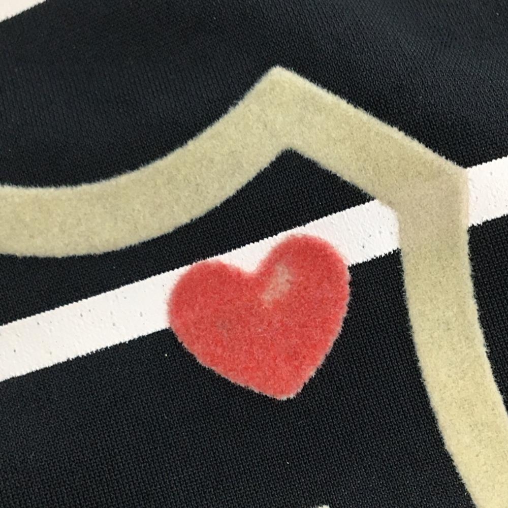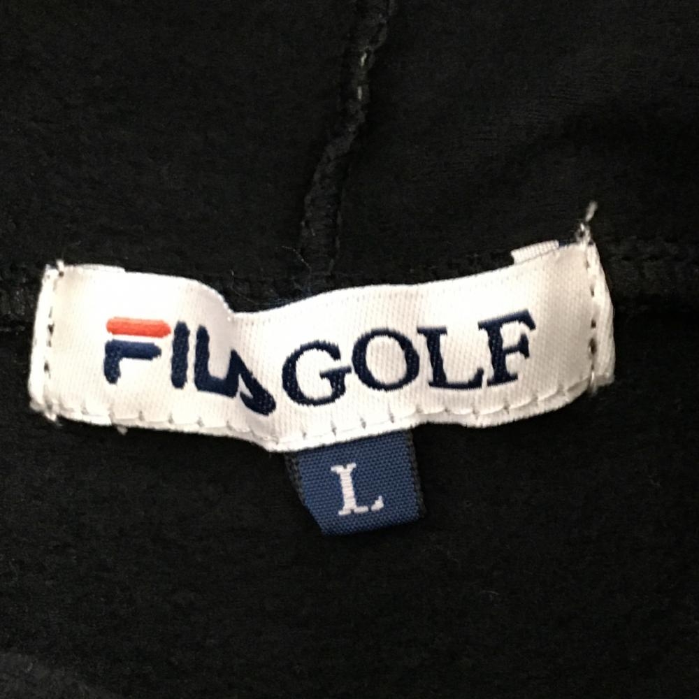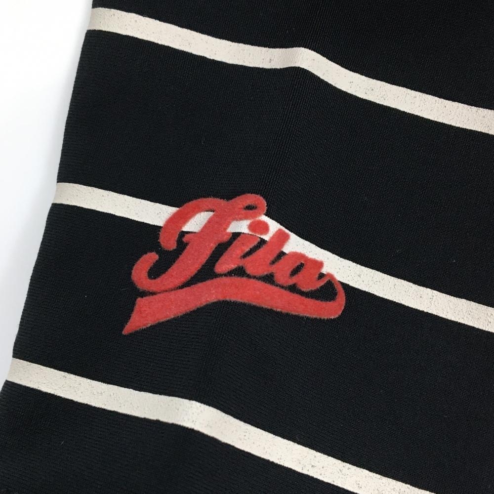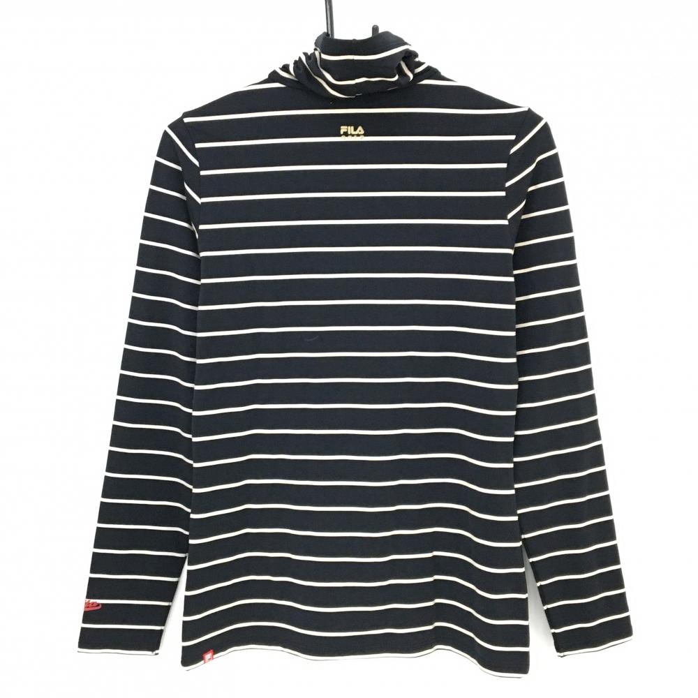 【美品】フィラゴルフ 長袖ハイネックシャツ 黒×白 ボーダー 裏起毛 フロッキープリント レディース L ゴルフウェア FILA GOLF
