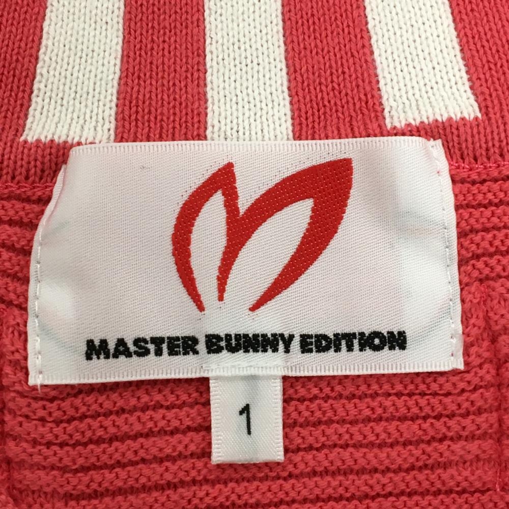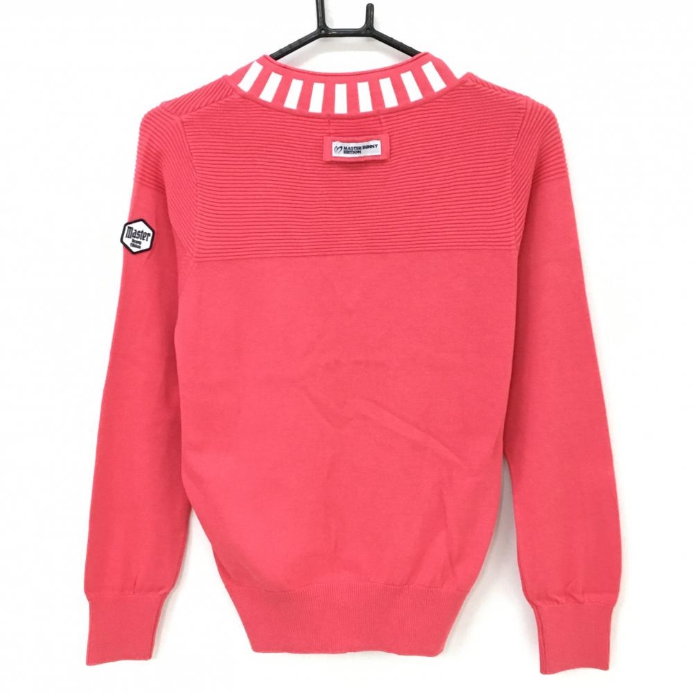 【美品】マスターバニー セーター ピンクレッド コットン混 Vネック ニット レディース 1(M) ゴルフウェア MASTER BUNNY EDITION
