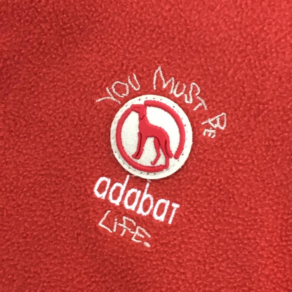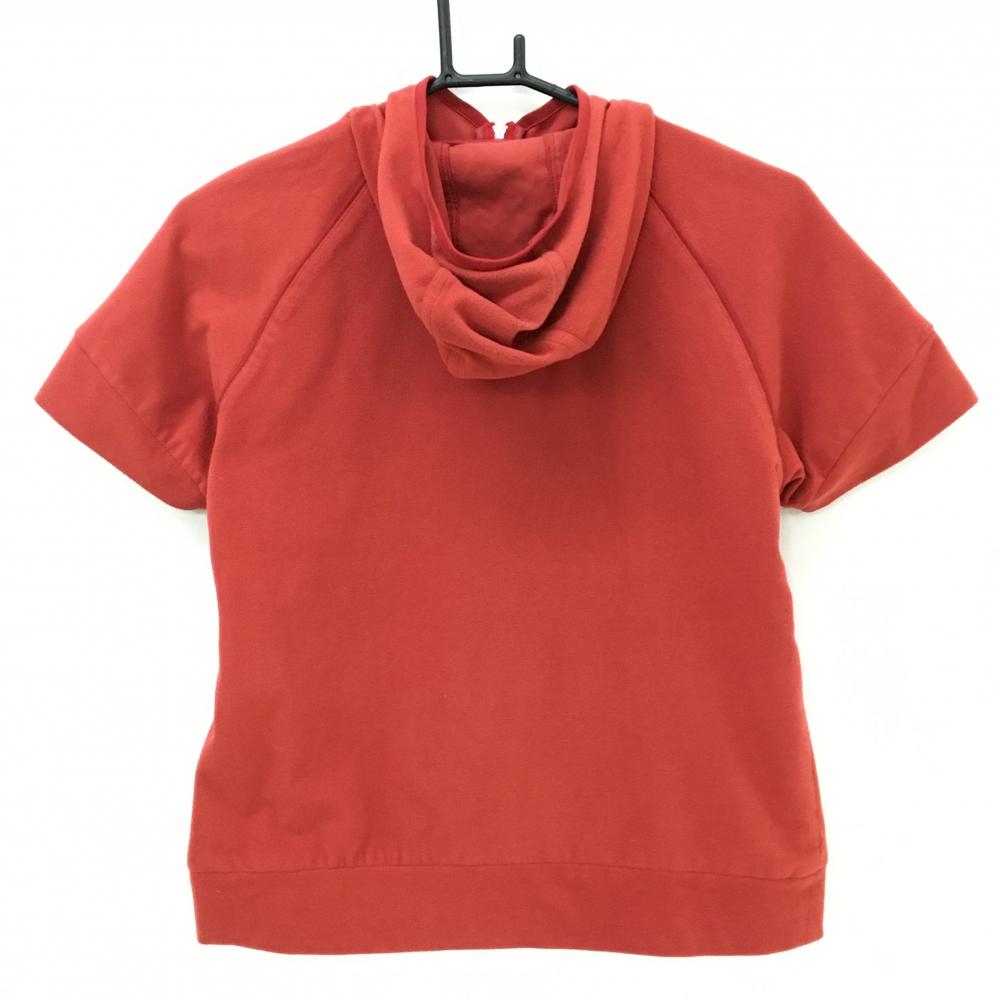 アダバット フード付半袖ブルゾン レッド系×白 起毛素材 裏地付 レディース 38(M) ゴルフウェア adabat