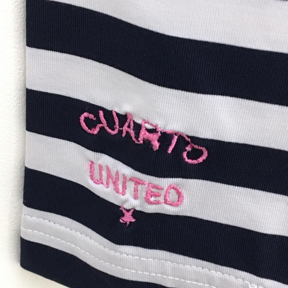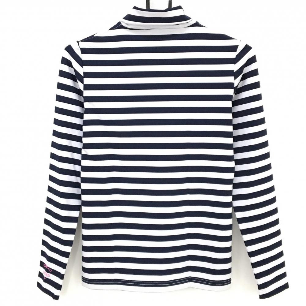 【美品】クアルトユナイテッド 長袖ハイネックシャツ ネイビー×白 ボーダー 裏微起毛 レディース ゴルフウェア CUARTO UNITED