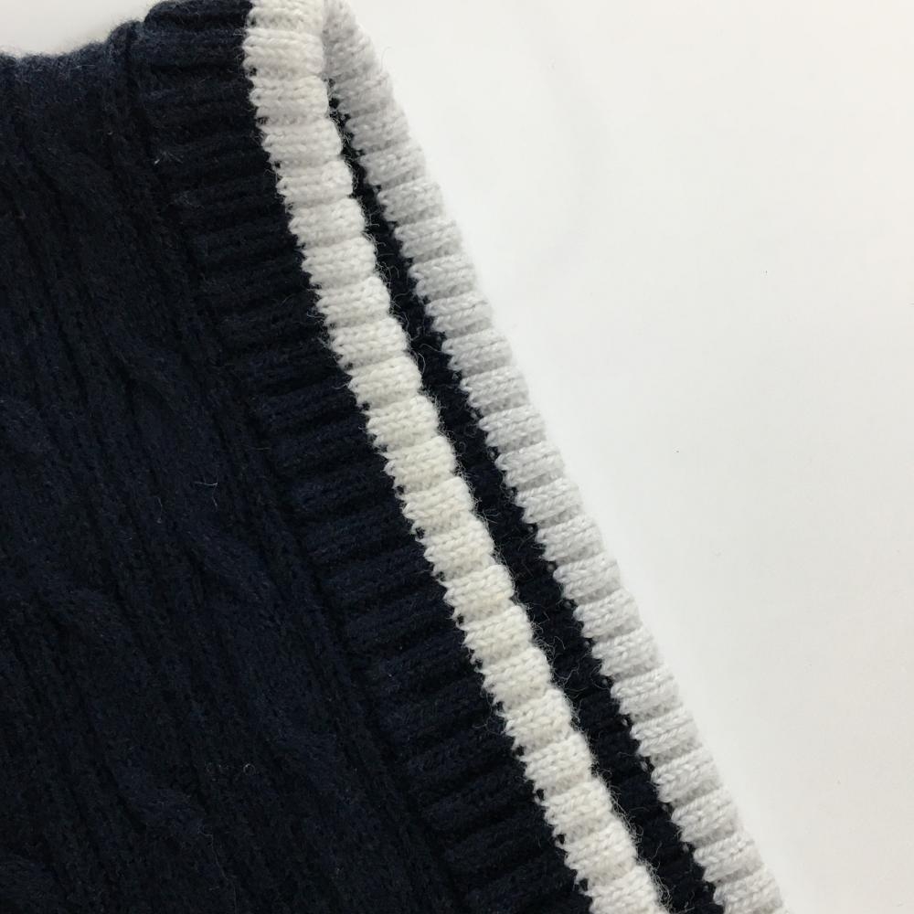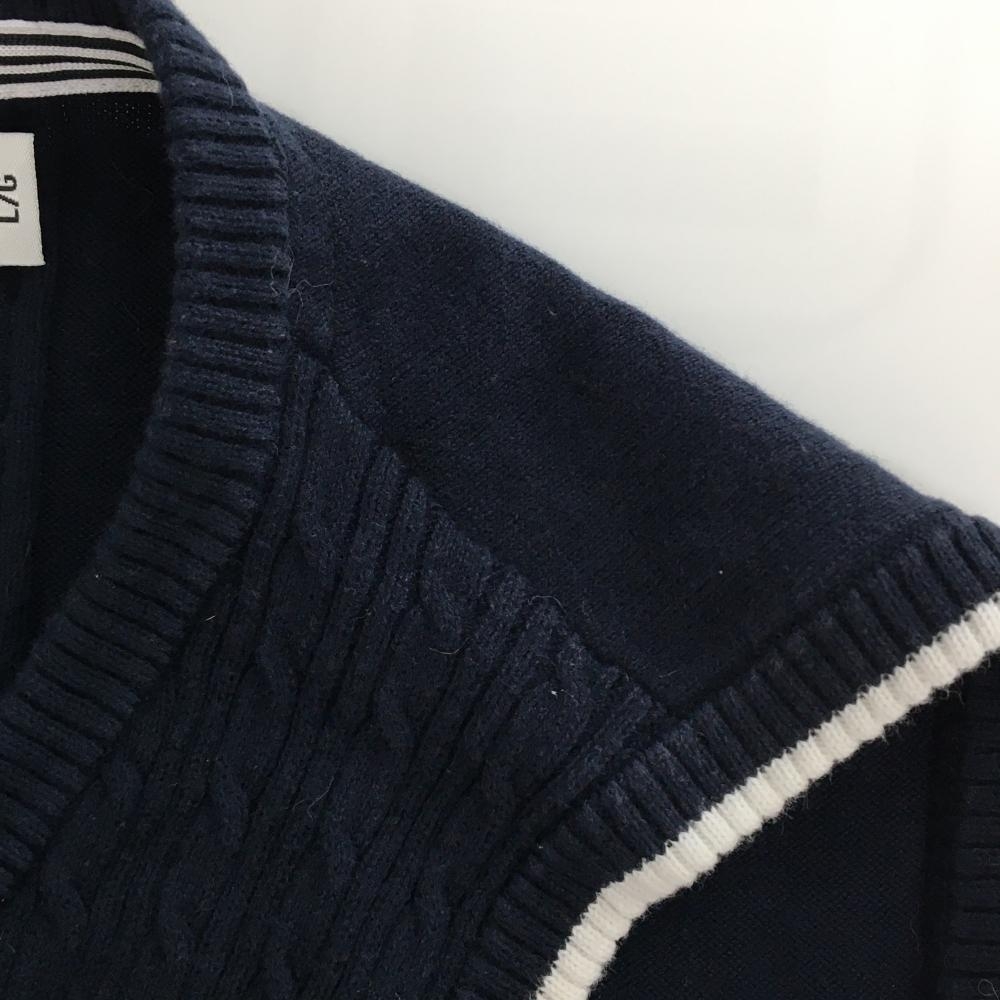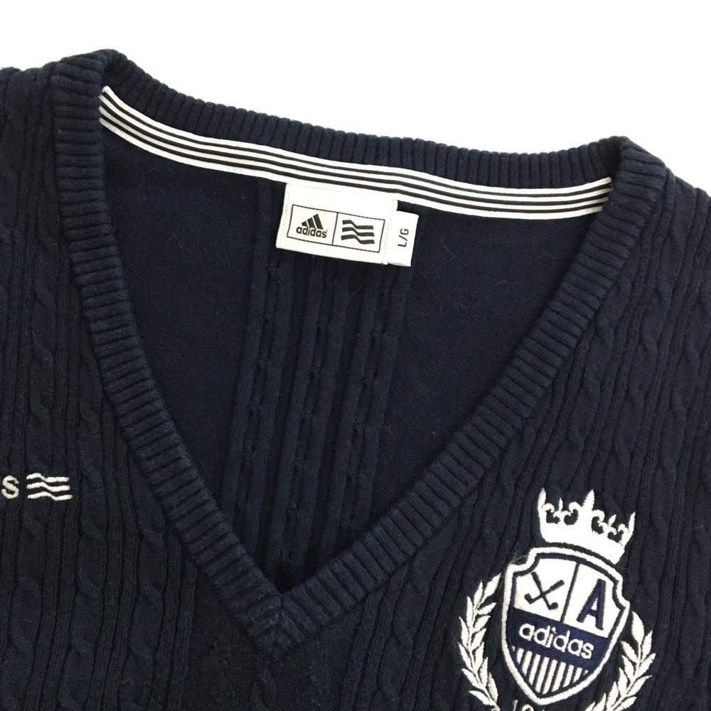 アディダス ニットベスト ネイビー×白 ケーブル編み レディース L/G ゴルフウェア ネック・肩色褪せ、アームホール薄汚れ adidas