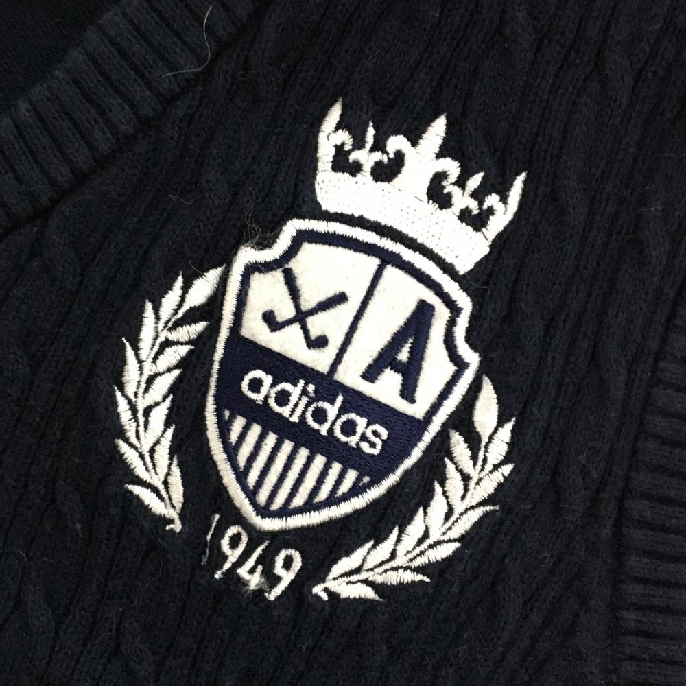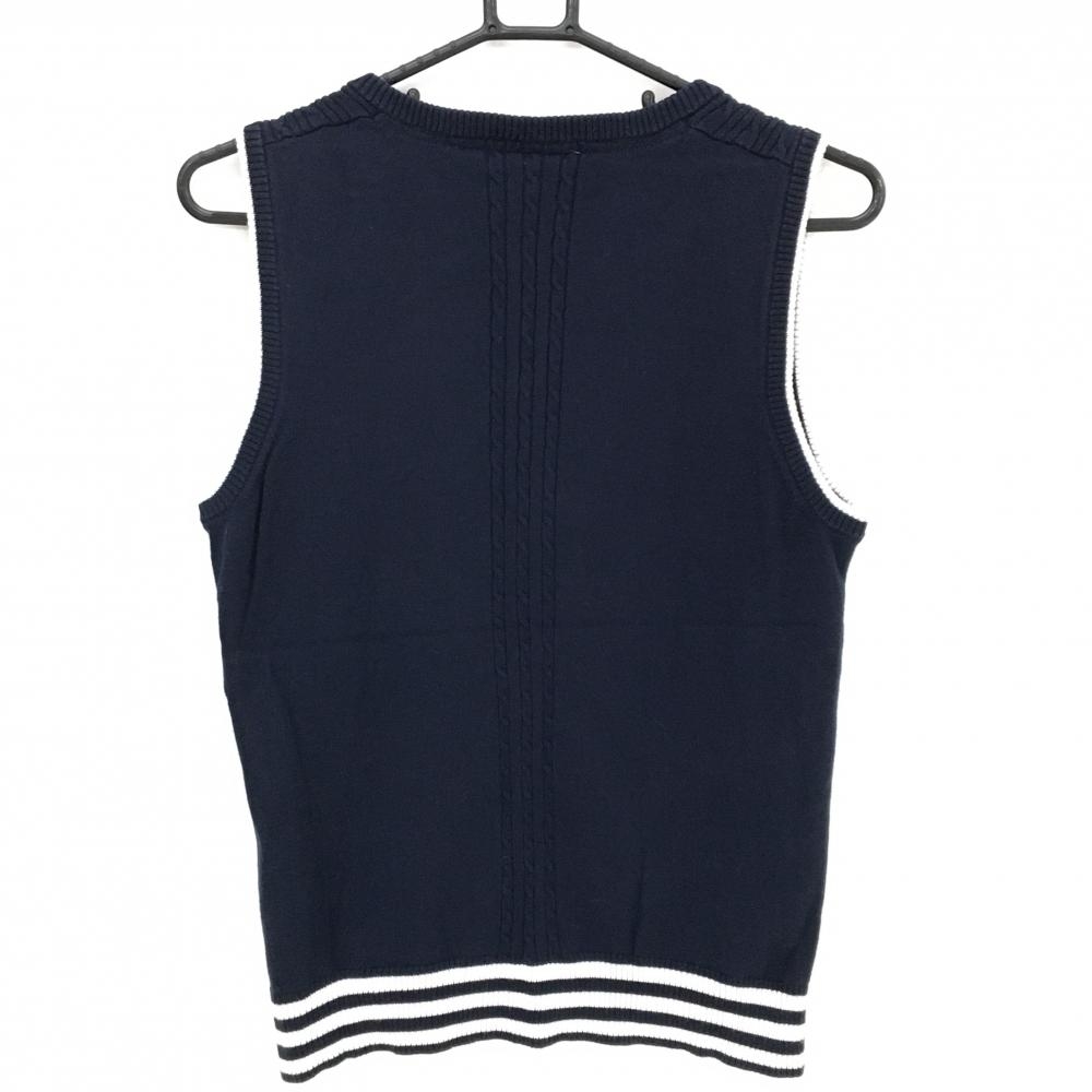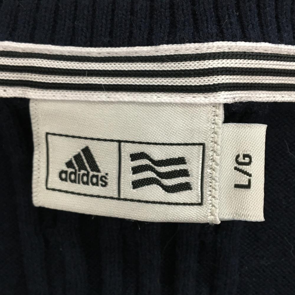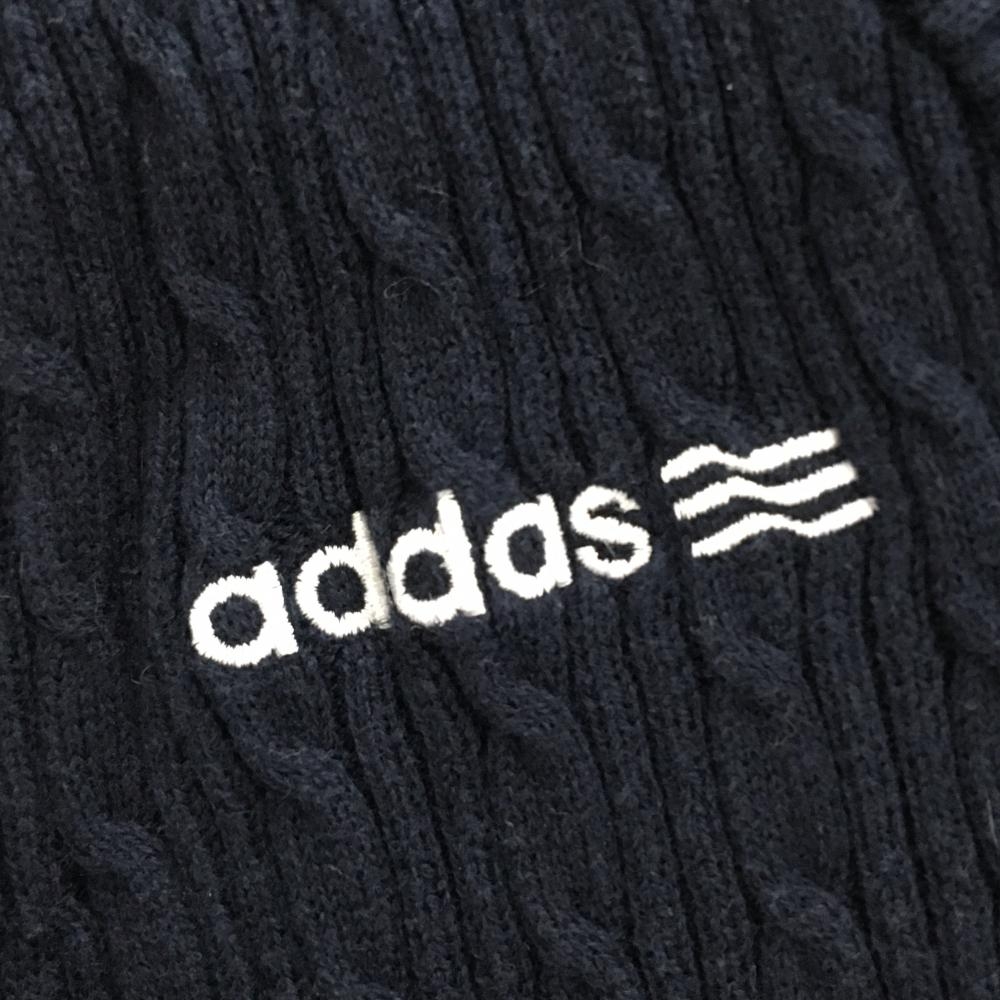 アディダス ニットベスト ネイビー×白 ケーブル編み レディース L/G ゴルフウェア ネック・肩色褪せ、アームホール薄汚れ adidas