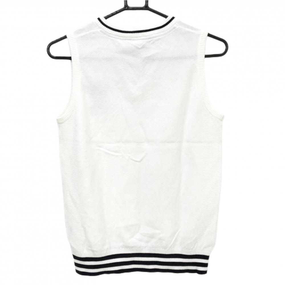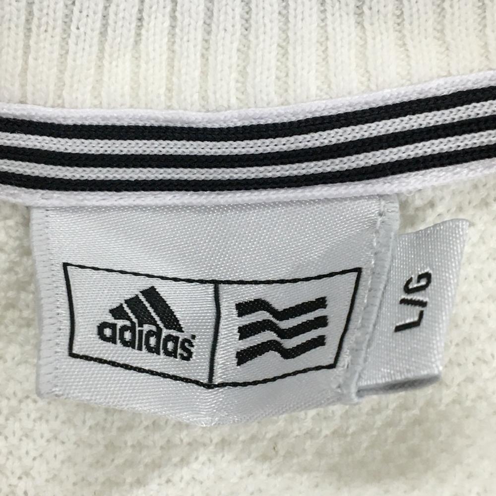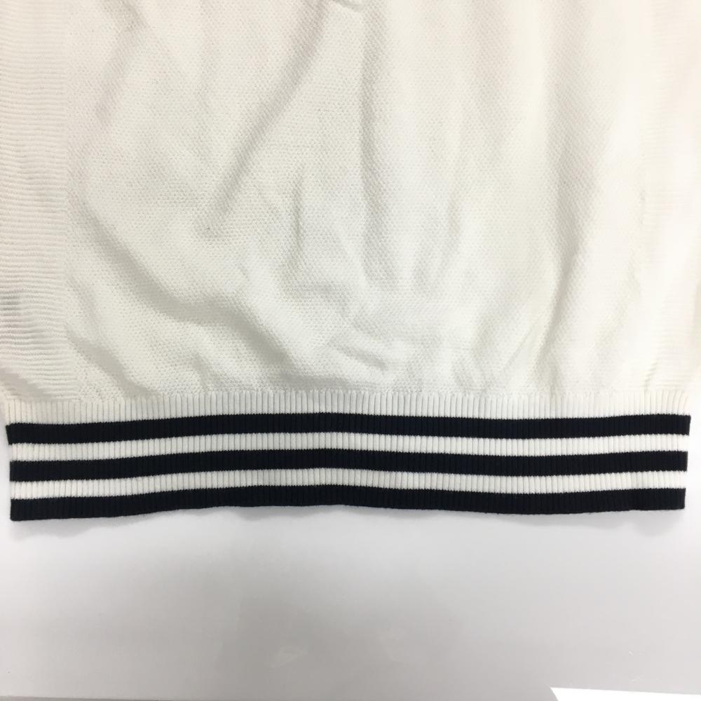 アディダス ニットベスト 白×ダークネイビー 胸元刺しゅう Vネック コットン100% レディース L/G ゴルフウェア adidas