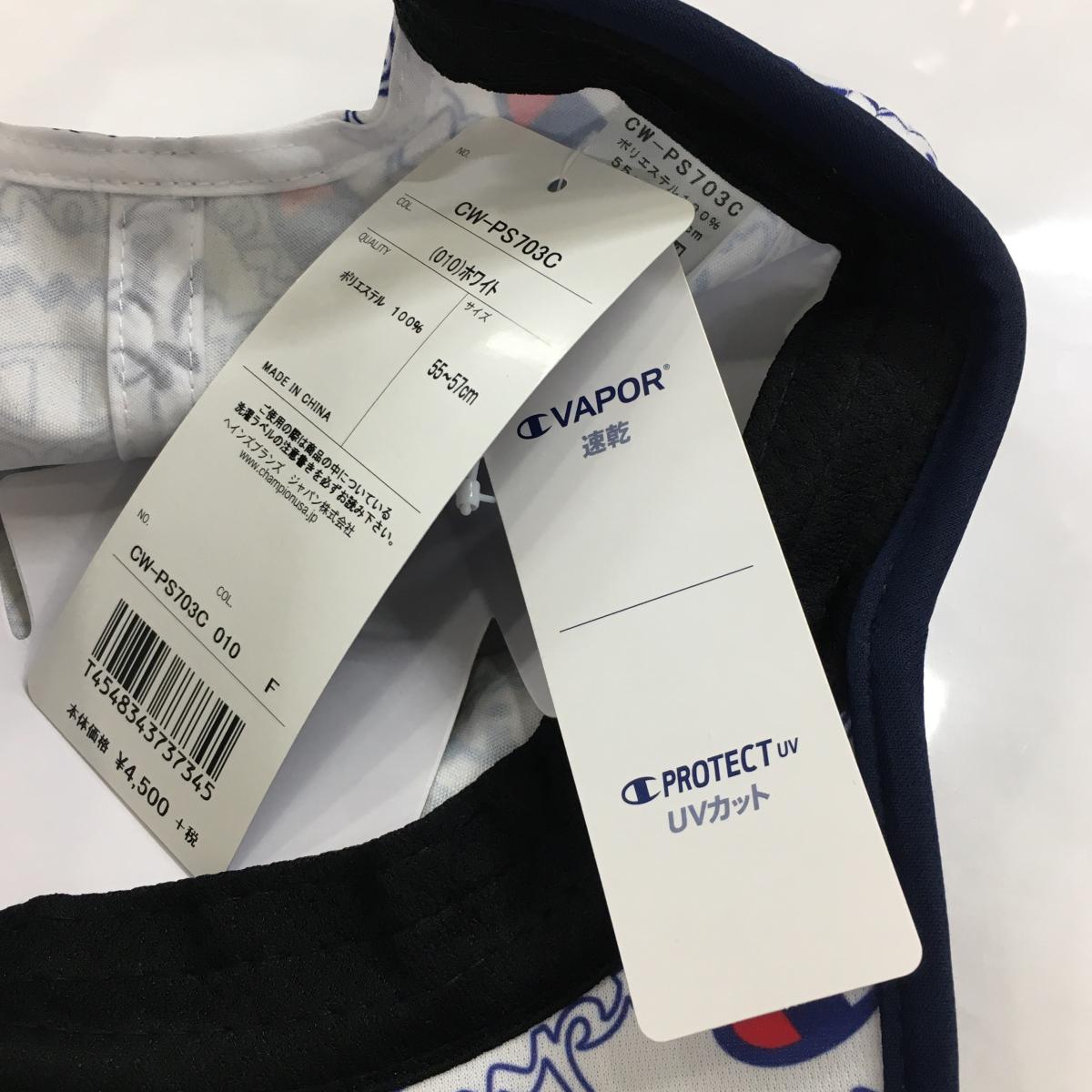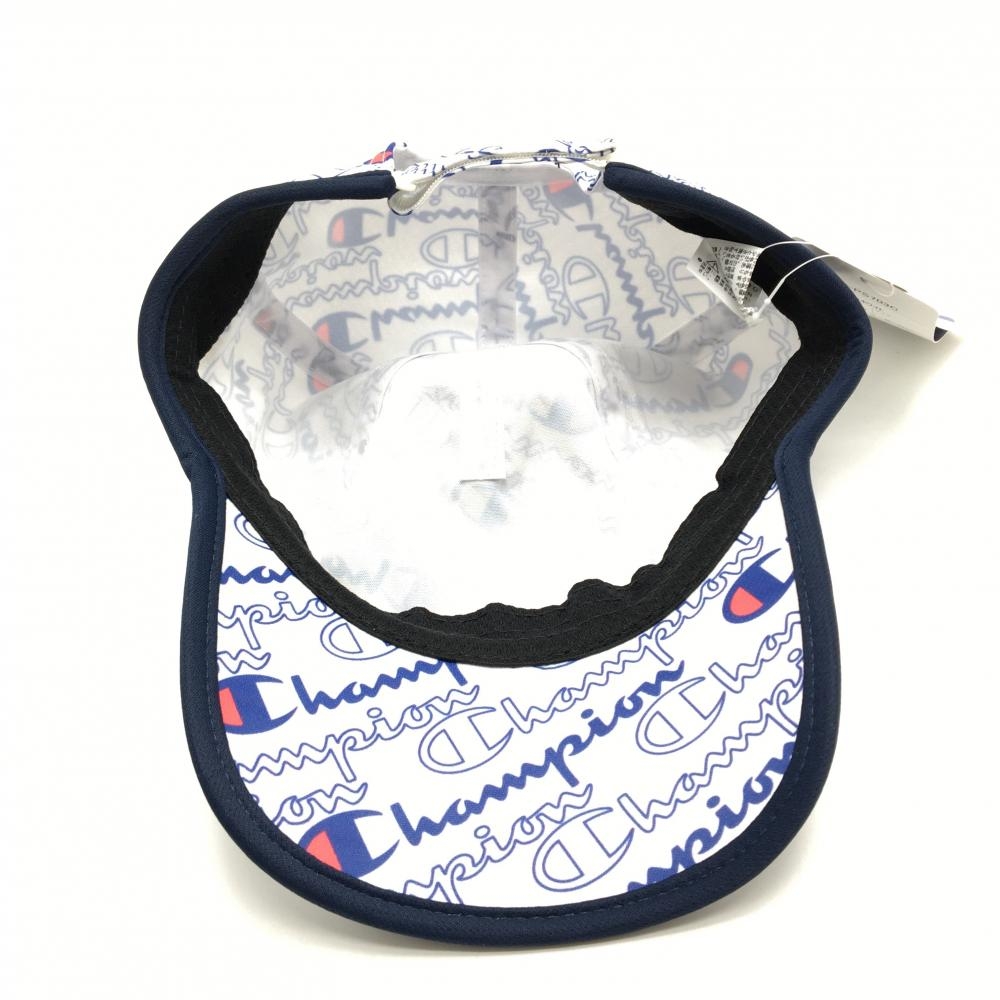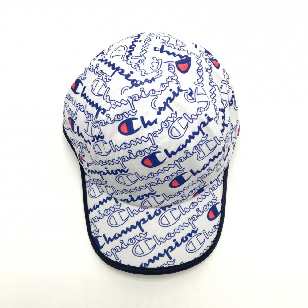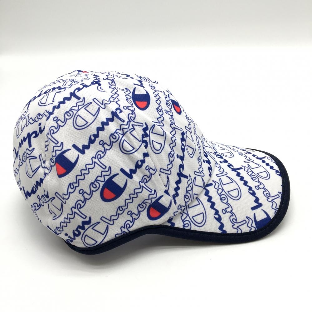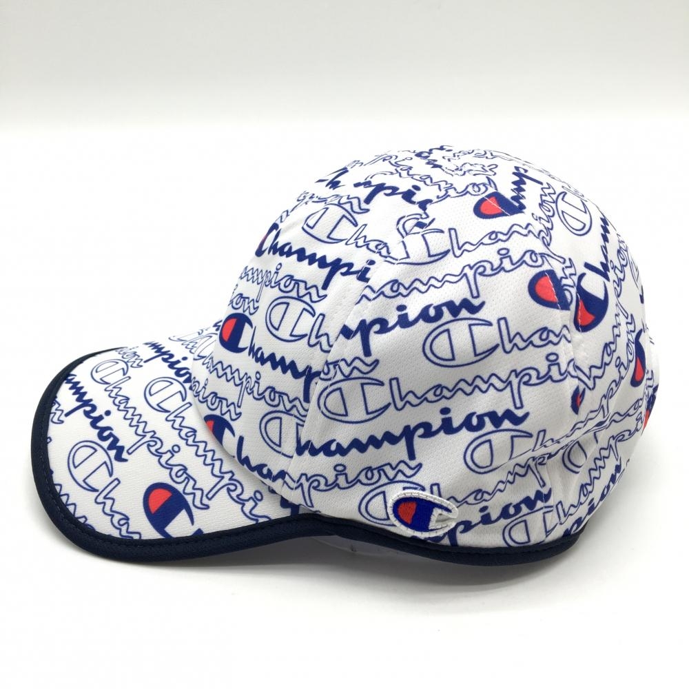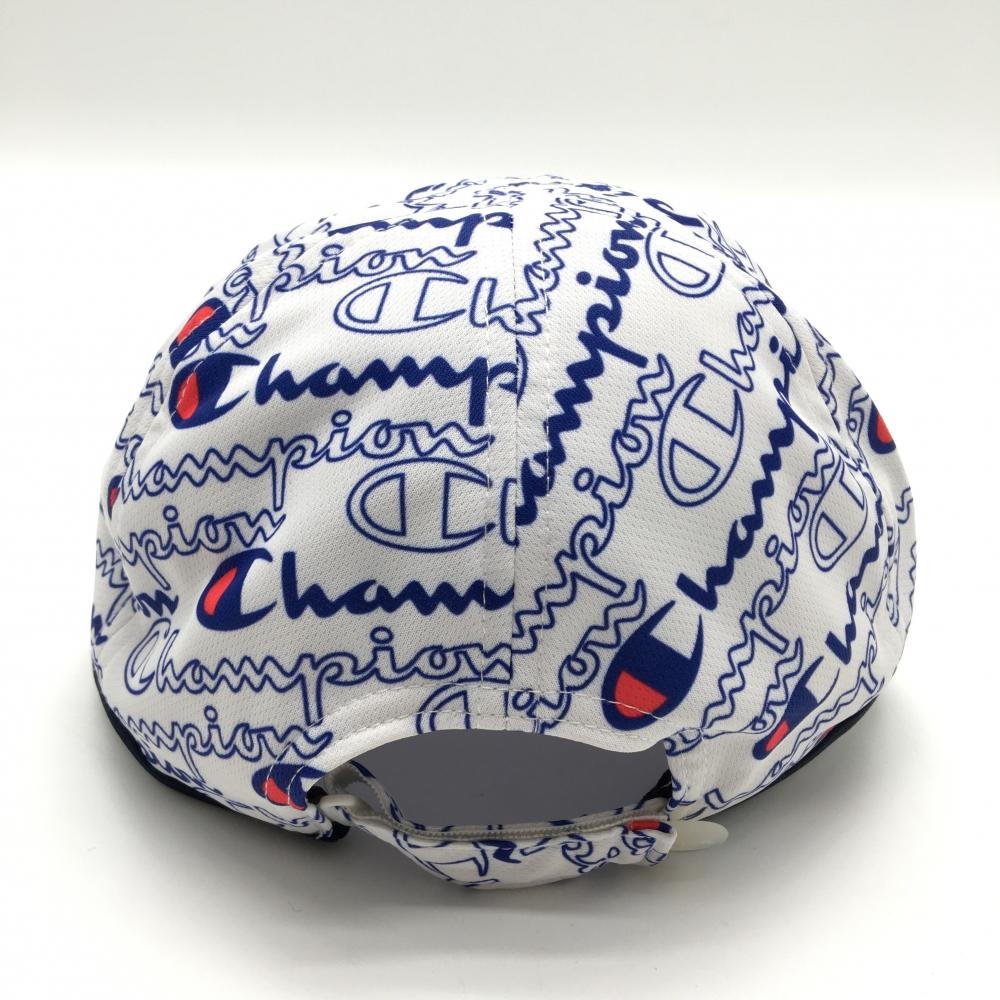 【新品】チャンピオン キャップ 白×ネイビー×レッド ロゴ総柄 速乾 UVカット レディース 55cm~57cm ゴルフウェア Champion