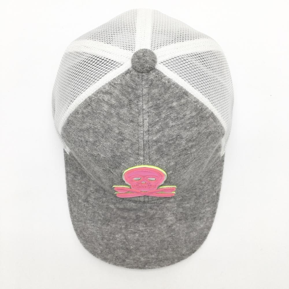 【超美品】マークアンドロナ メッシュキャップ 杢グレー×ピンク×白 立体ロゴ 一部パイル地 M ゴルフウェア MARK&LONA