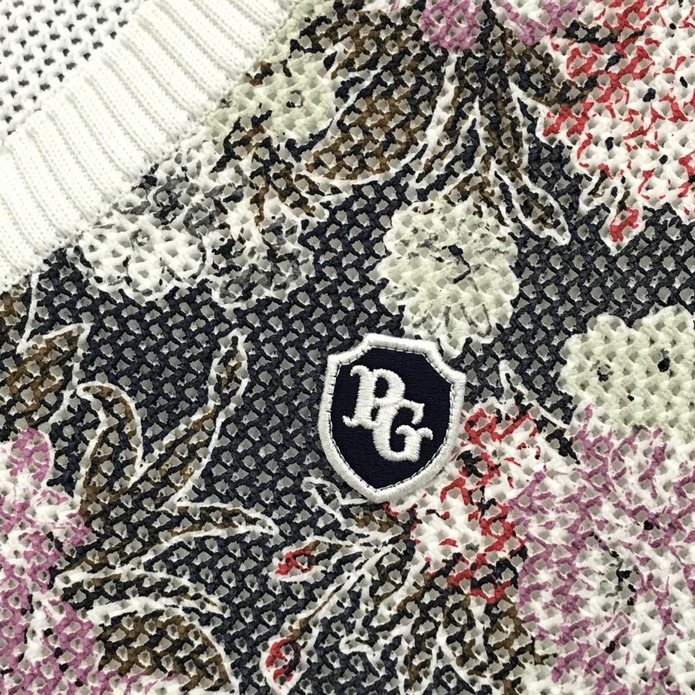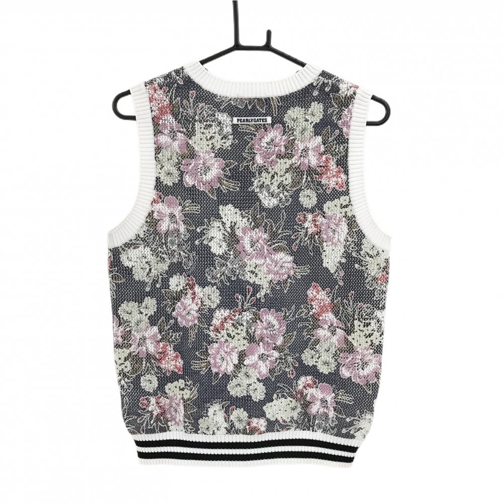 【美品】パーリーゲイツ ニットベスト ネイビー×ピンク×白 Vネック 花柄 レディース 1(M) ゴルフウェア PEARLY GATES