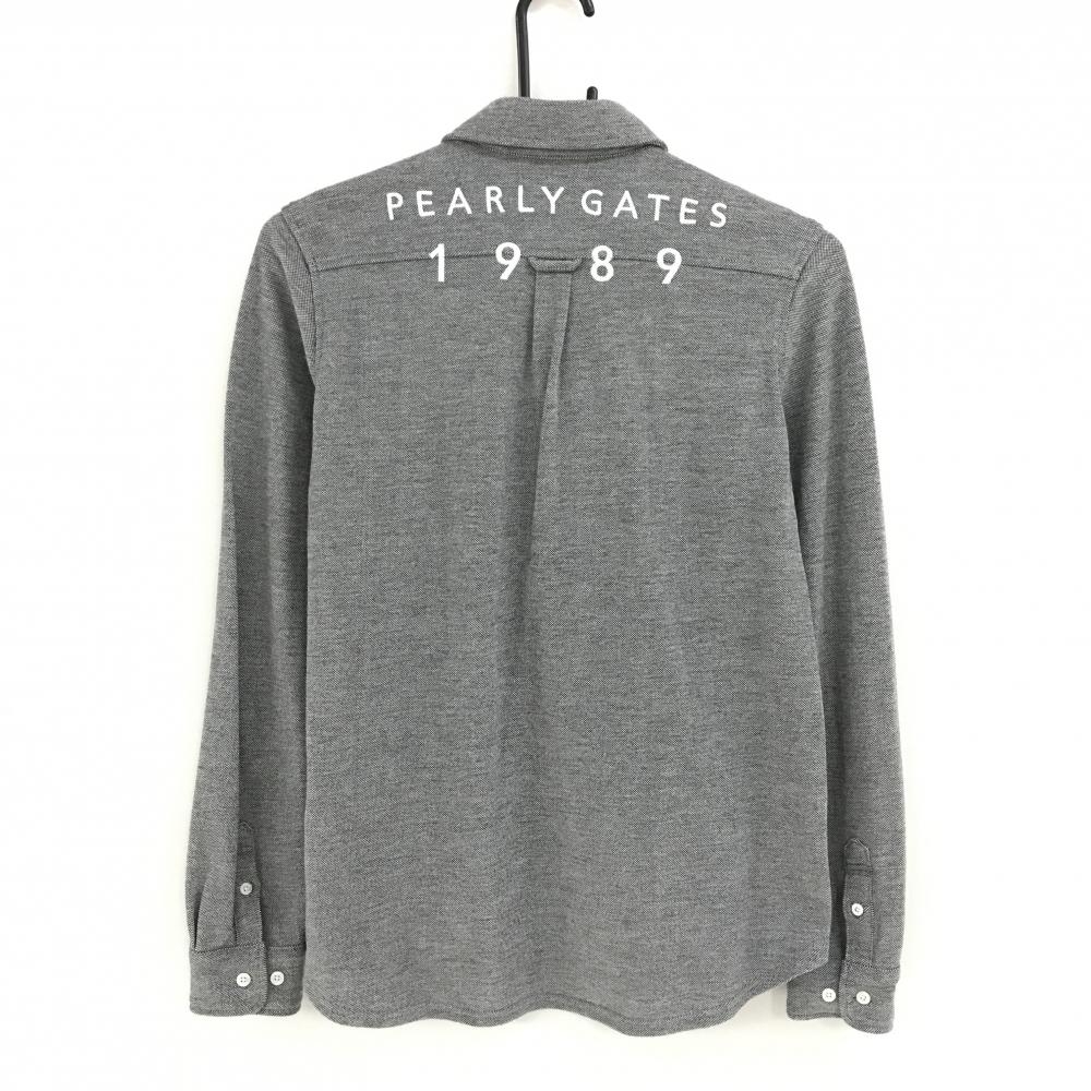 【美品】パーリーゲイツ 長袖シャツ 杢グレー 胸ポケット レディース 1(M) ゴルフウェア PEARLY GATES
