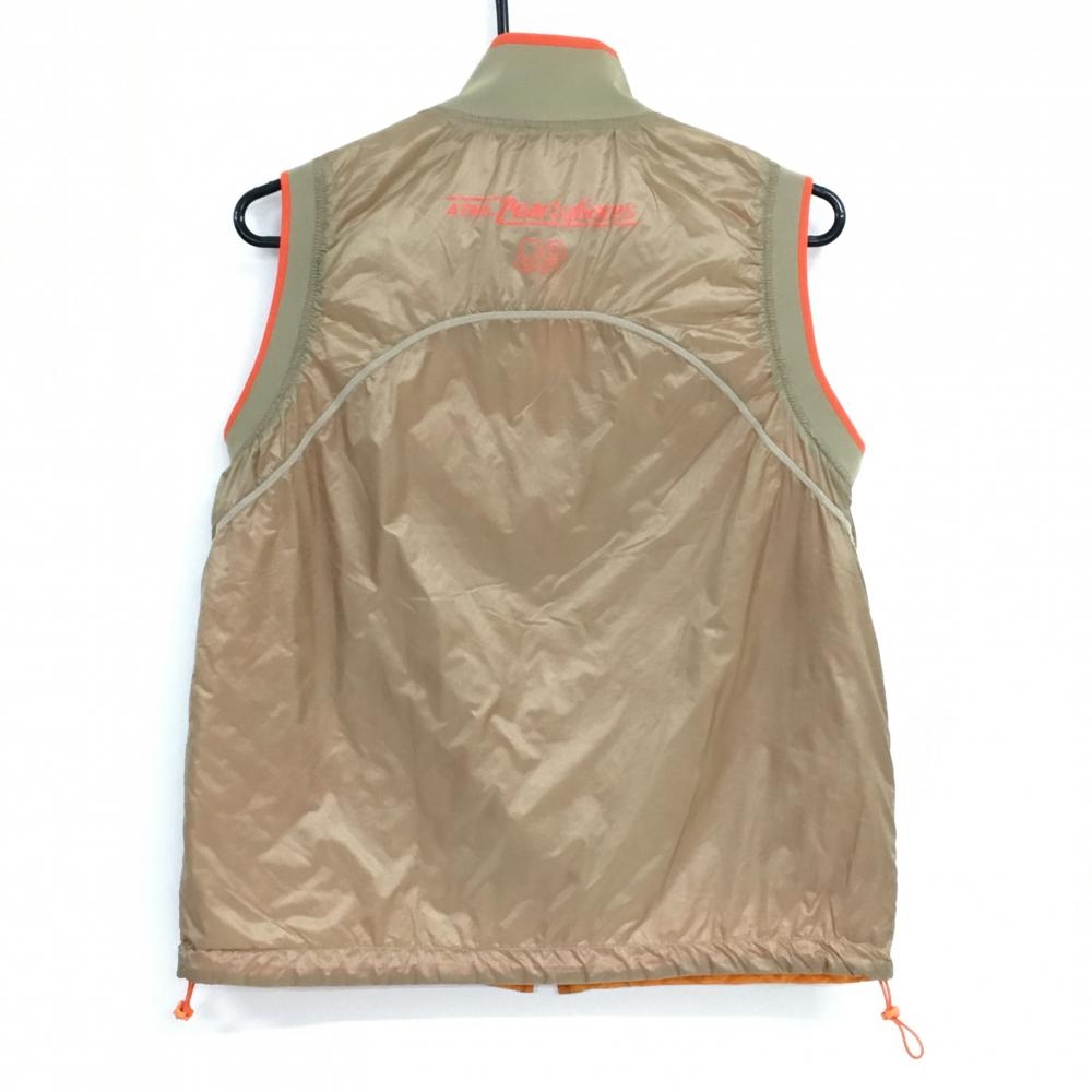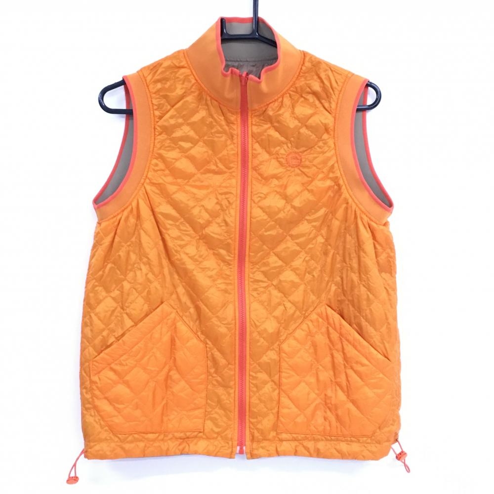 パーリーゲイツ 中綿リバーシブルベスト ベージュ×オレンジ ロゴプリント 片面キルティング レディース 1(M) ゴルフウェア PEARLY GATES