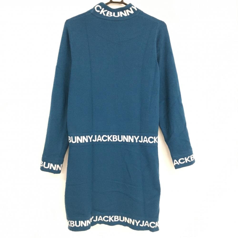ジャックバニー ハイネックニットワンピース グリーン×白 ネックロゴ 裏地付 レディース 2(L) ゴルフウェア Jack Bunny