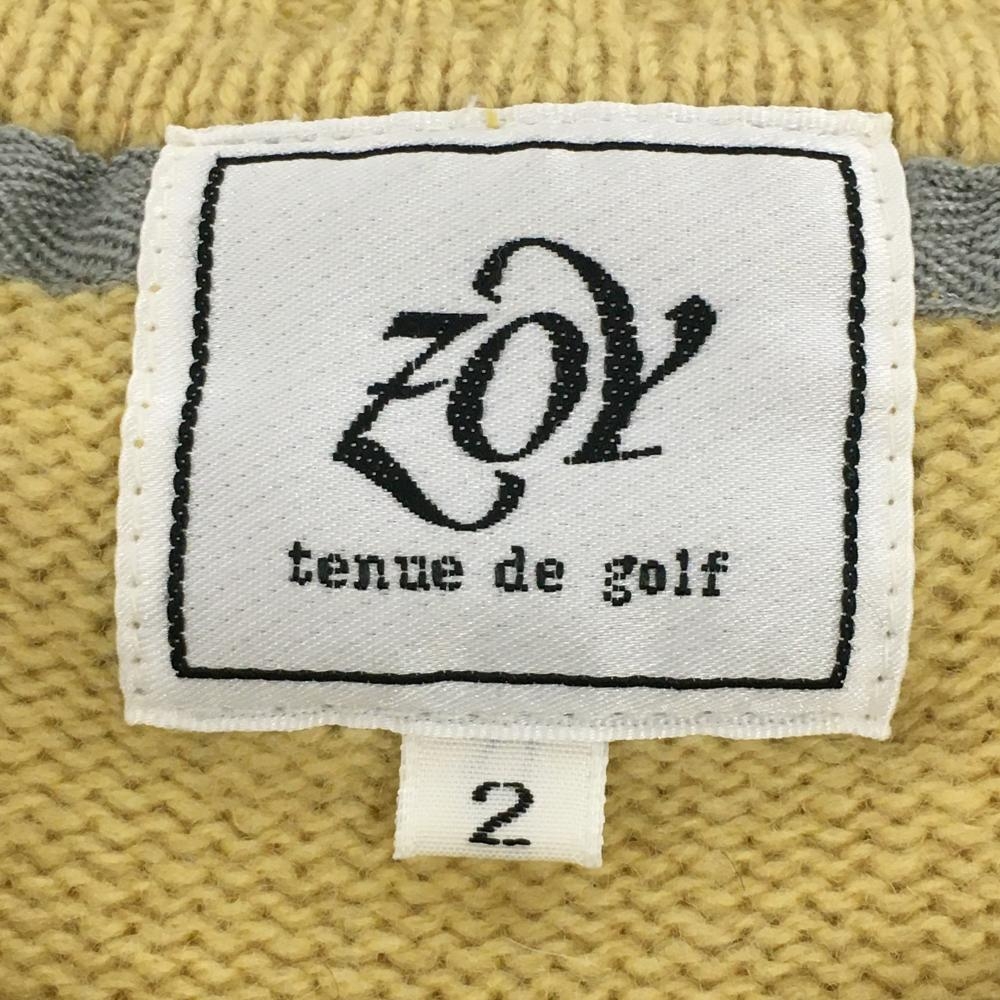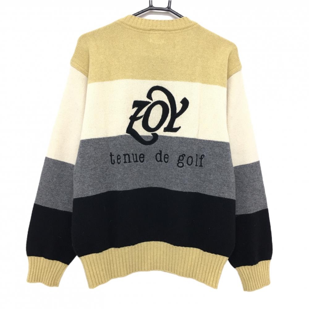 ゾーイ セーター マスタードイエロー×アイボリー×グレー ボーダー ウール100% ニット メンズ 2(M) ゴルフウェア ZOY