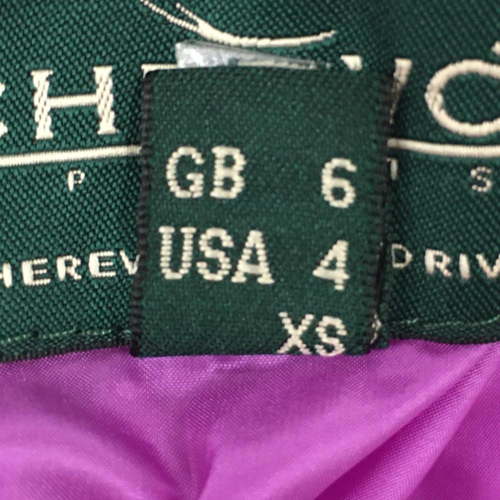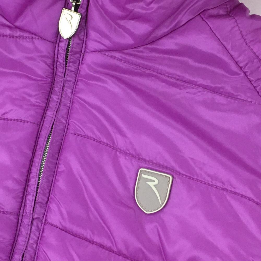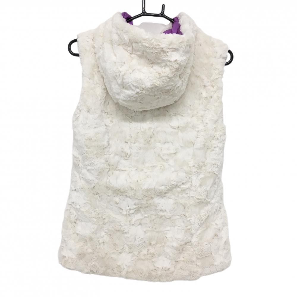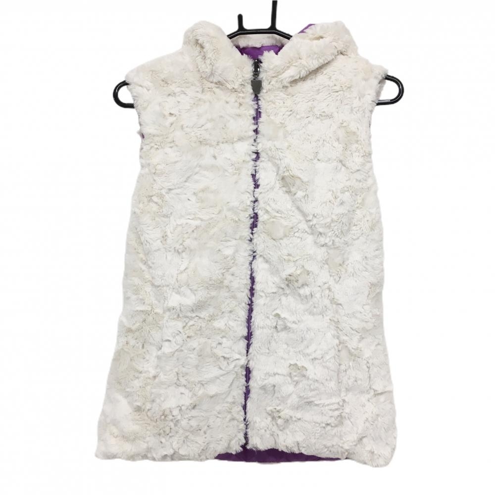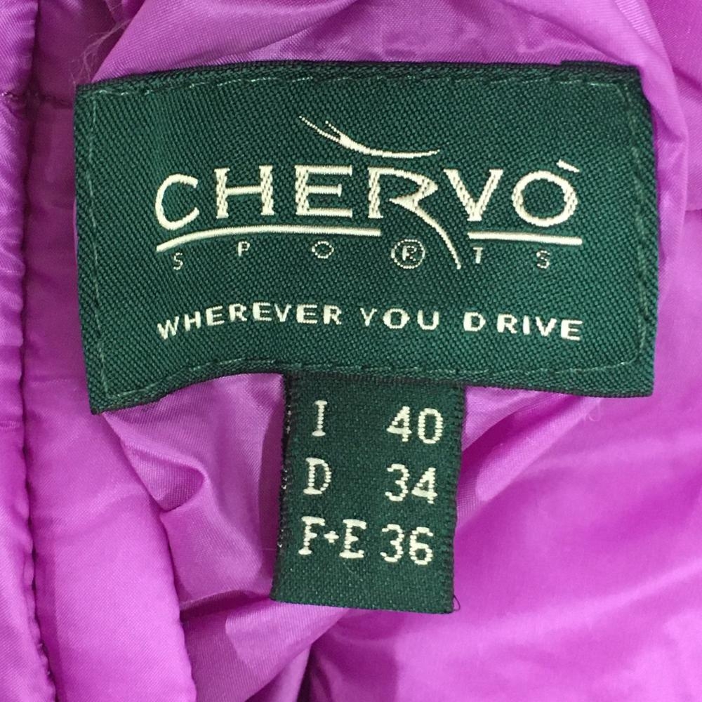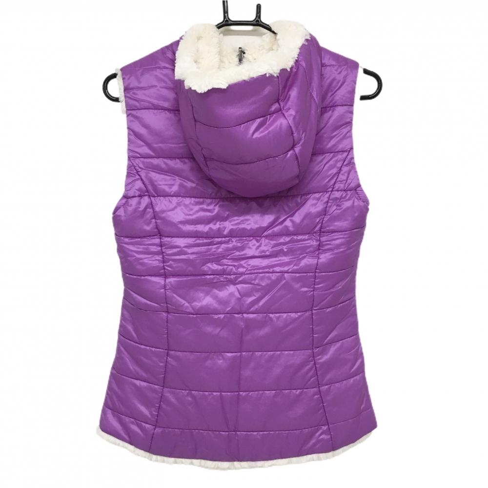 【超美品】シェルボ フード付き中綿リバーシブルベスト パープル 裏ボア ロゴワッペン レディース USA-XS ゴルフウェア CHERVO