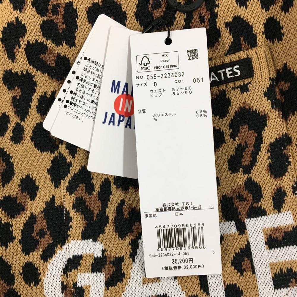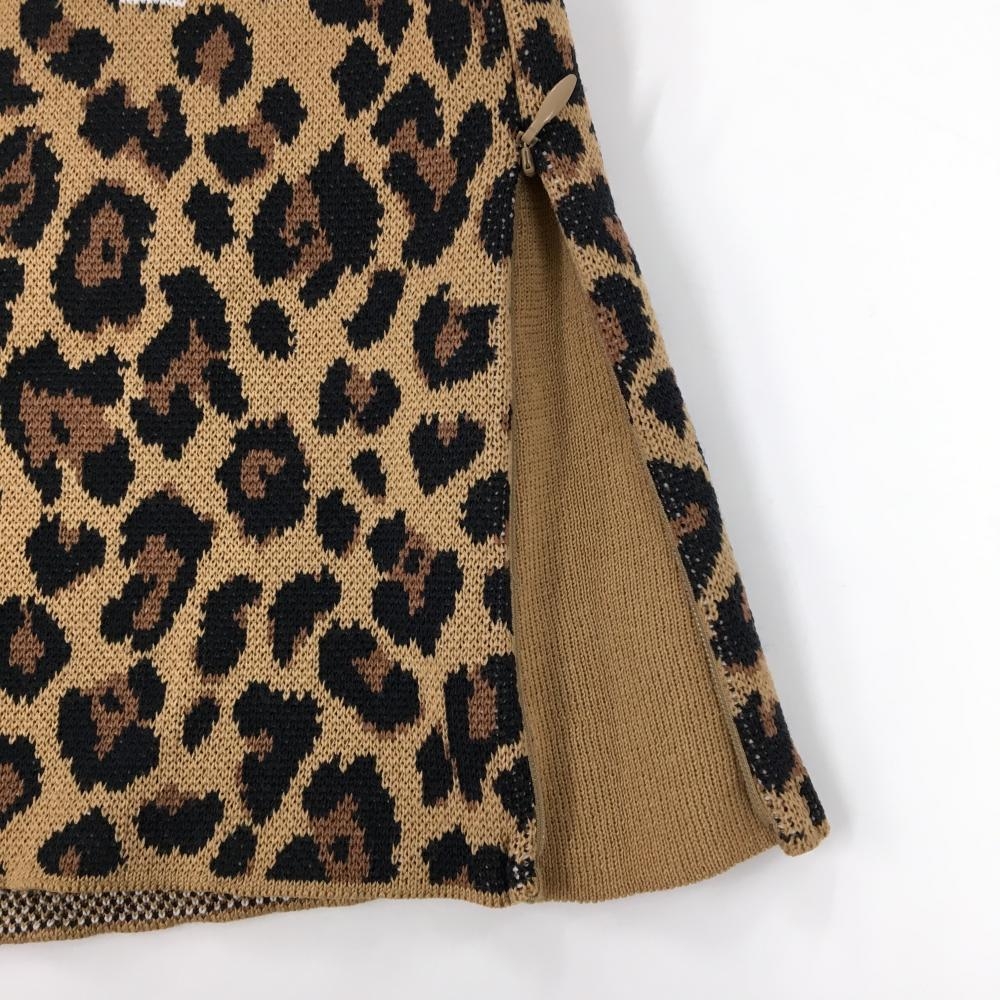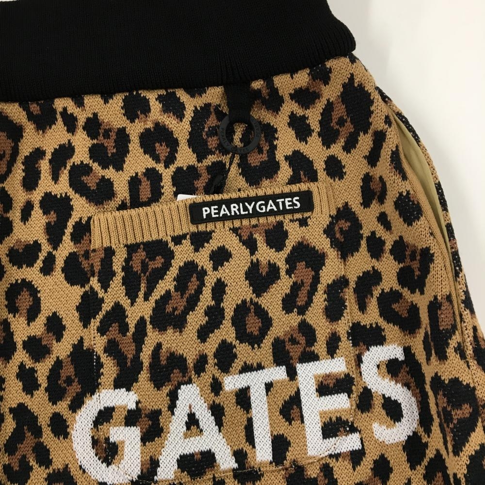 【新品】パーリーゲイツ ニットスカート ライトブラウン×黒 レオパード柄 ロゴ白 ウール混 レディース 0(S) ゴルフウェア PEARLY GATES