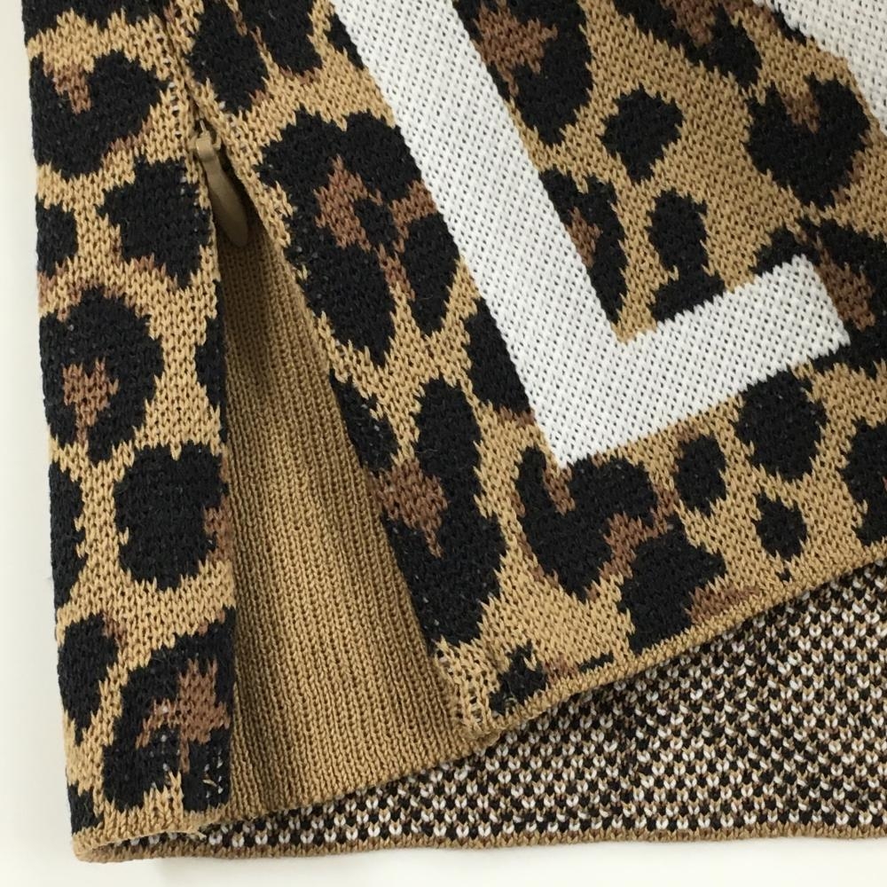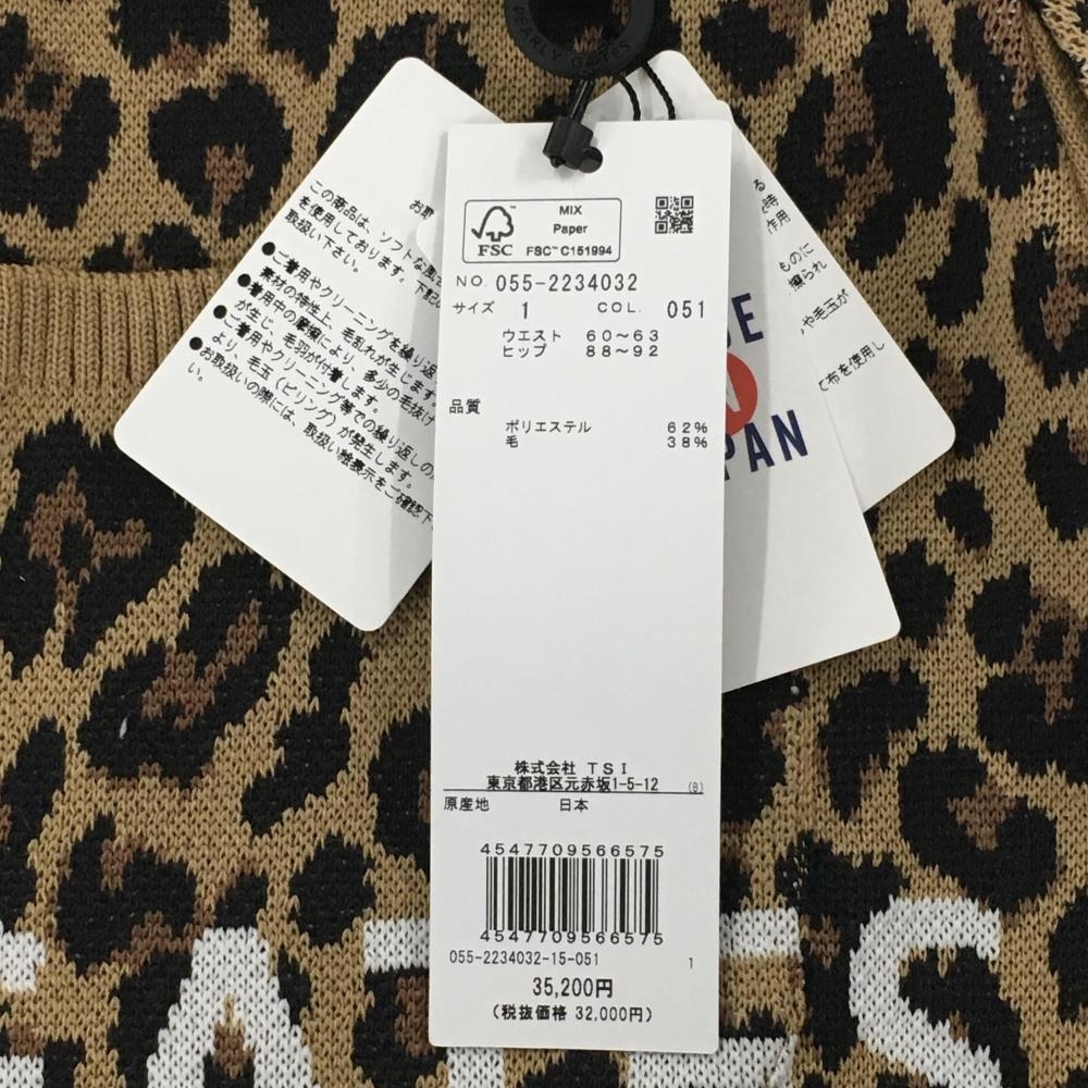 【新品】パーリーゲイツ ニットスカート ライトブラウン×黒 レオパード柄 ロゴ白 ウール混 レディース 1(M) ゴルフウェア PEARLY GATES
