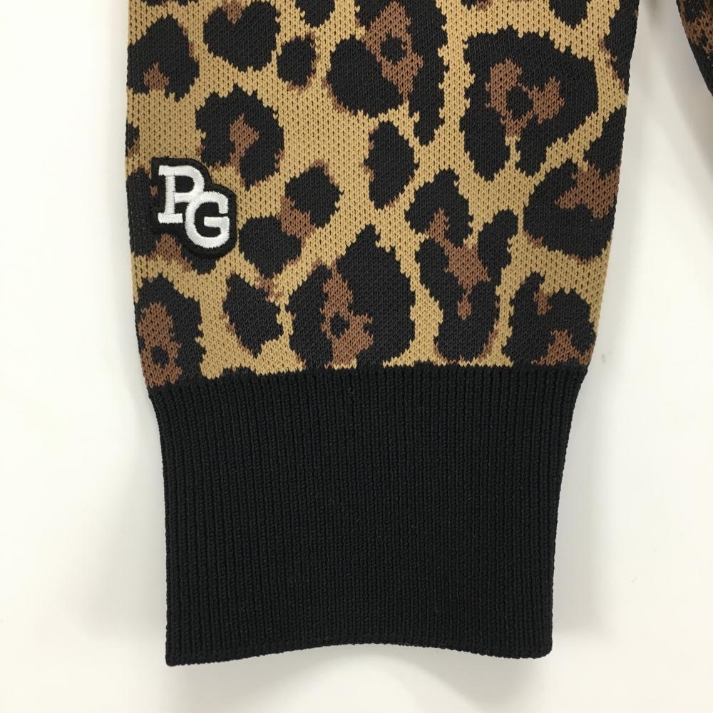 【新品】パーリーゲイツ セーター ライトブラウン×黒 レオパード柄 胸元ライン ロゴ刺しゅう レディース 0(S) ゴルフウェア PEARLY GATES