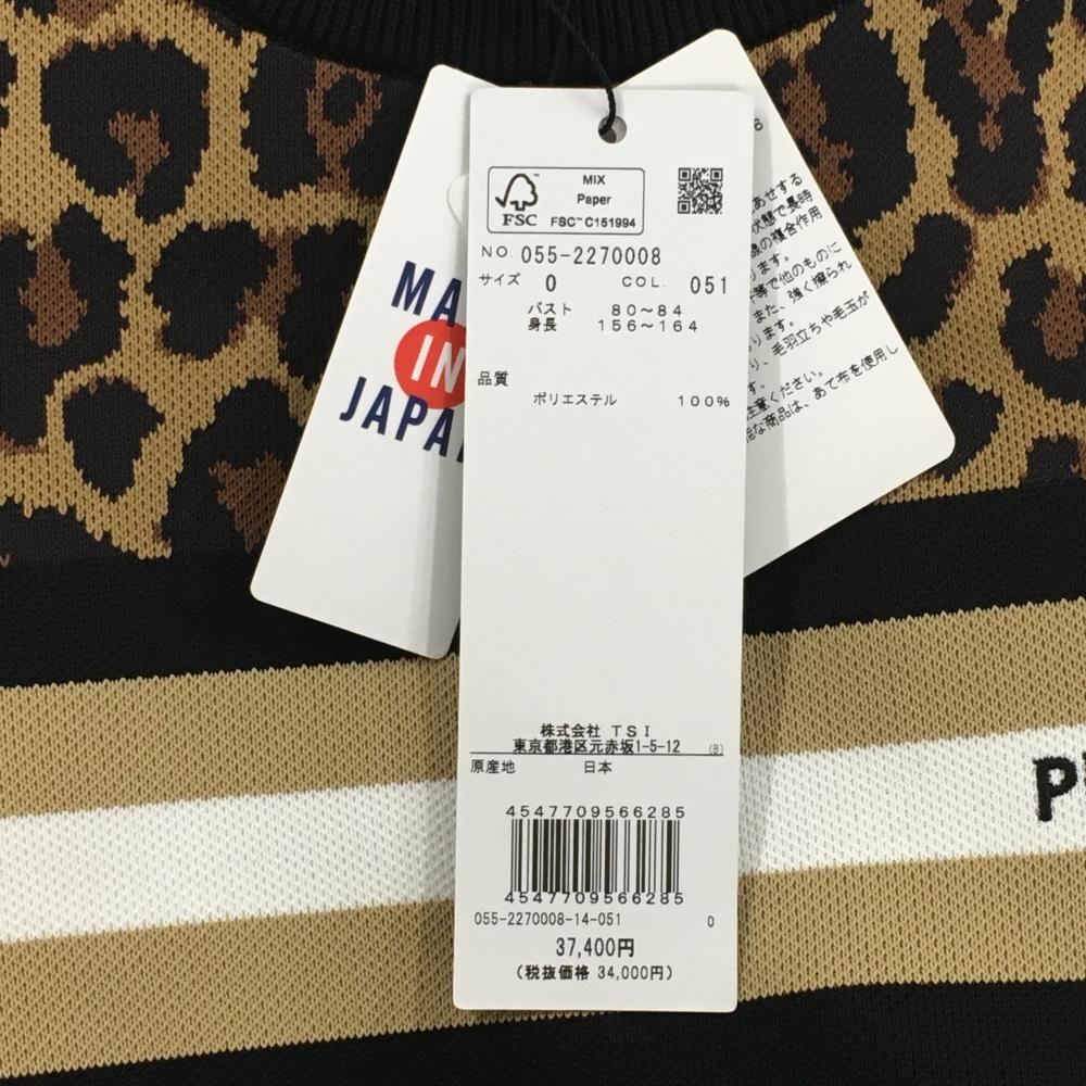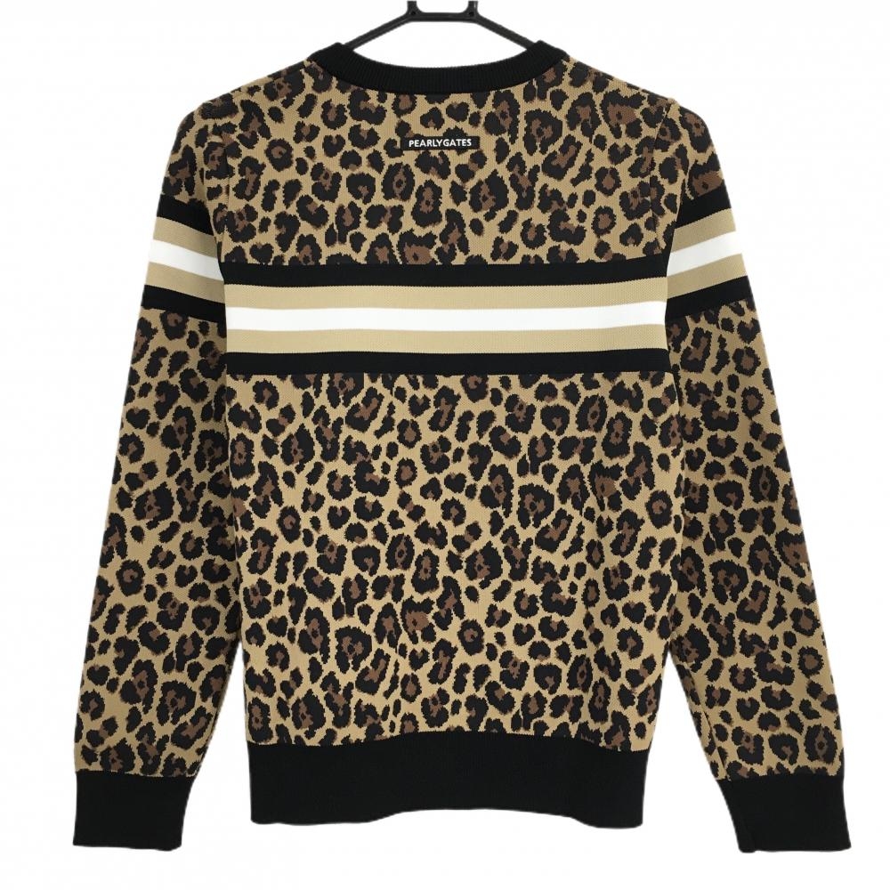 【新品】パーリーゲイツ セーター ライトブラウン×黒 レオパード柄 胸元ライン ロゴ刺しゅう レディース 0(S) ゴルフウェア PEARLY GATES
