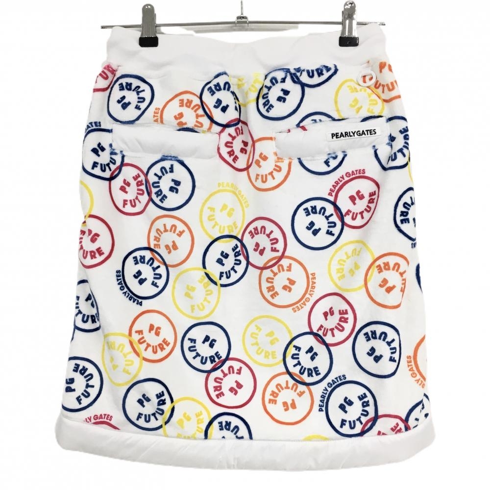 【新品】パーリーゲイツ ベロアスカート 白×マルチカラー FUTUREニコ 裏ボア レディース 1(M) ゴルフウェア PEARLY GATES