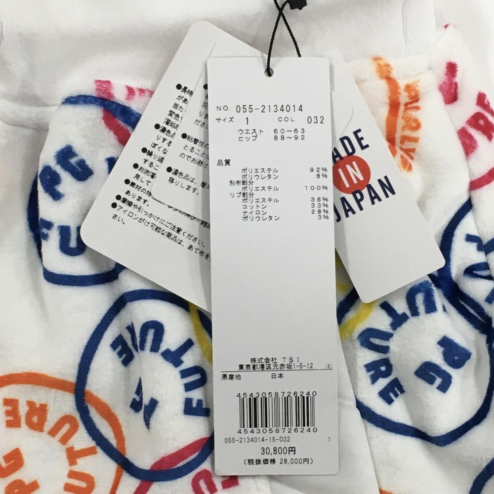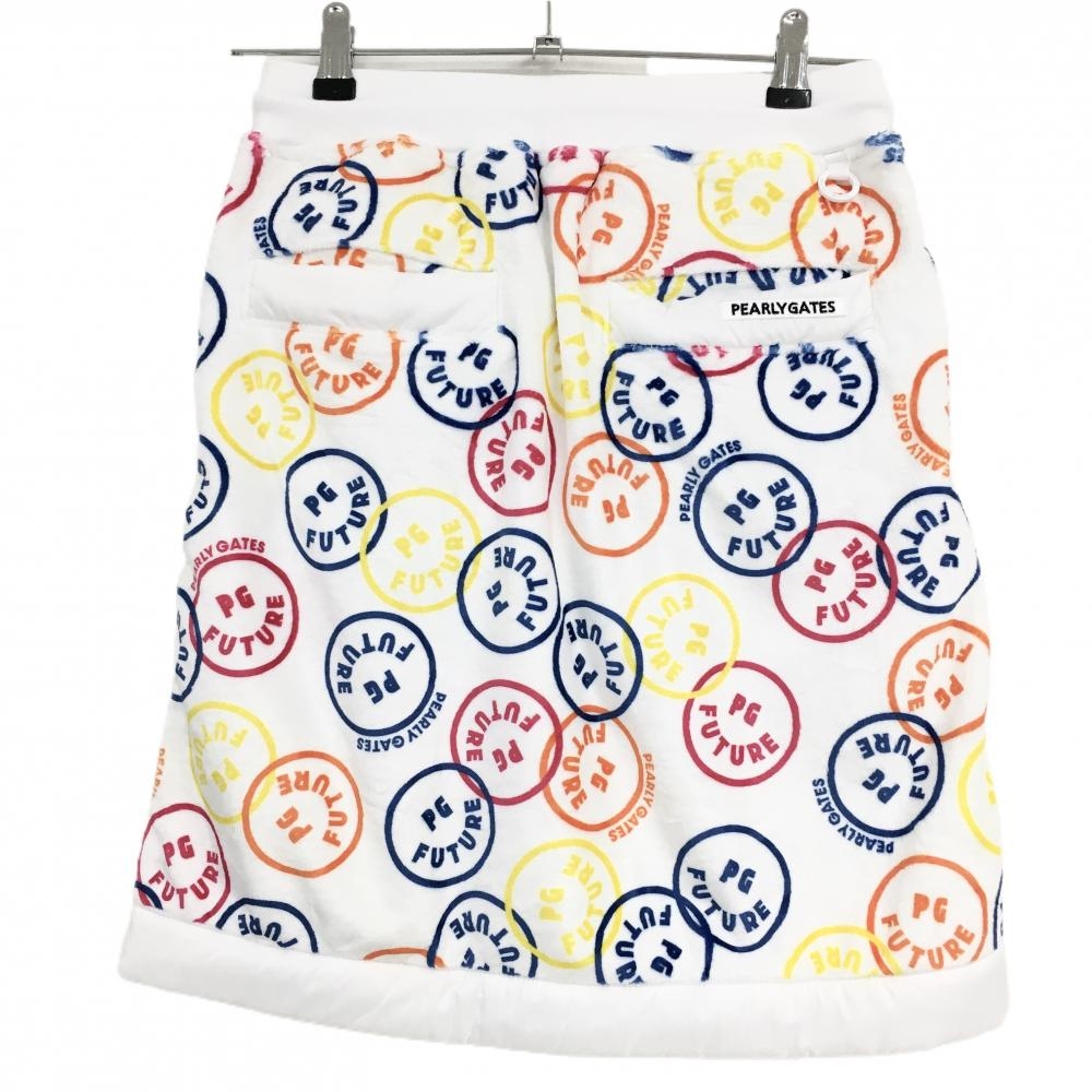 【新品】パーリーゲイツ ベロアスカート 白×マルチカラー FUTUREニコ 裏ボア レディース 1(M) ゴルフウェア PEARLY GATES
