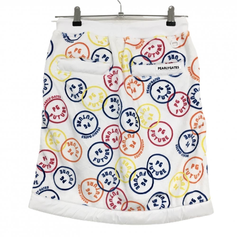 【新品】パーリーゲイツ ベロアスカート 白×マルチカラー FUTUREニコ 裏ボア レディース 1(M) ゴルフウェア PEARLY GATES