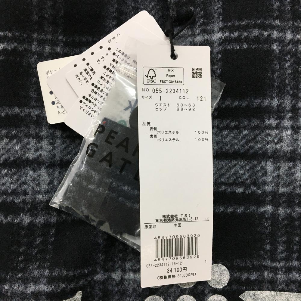 【新品】パーリーゲイツ スカート ネイビー×白 チェック 表起毛 下部プリント レディース 1(M) ゴルフウェア PEARLY GATES