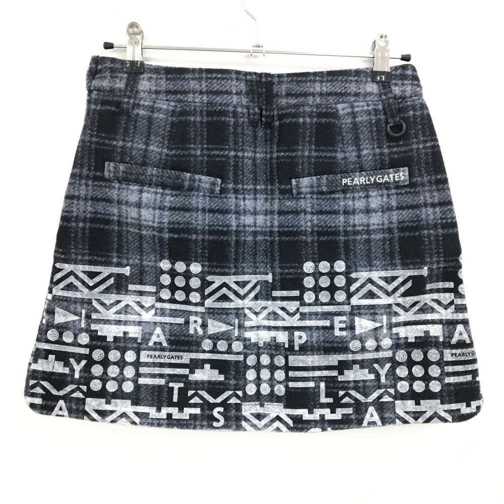 【新品】パーリーゲイツ スカート ネイビー×白 チェック 表起毛 下部プリント レディース 0(S) ゴルフウェア PEARLY GATES
