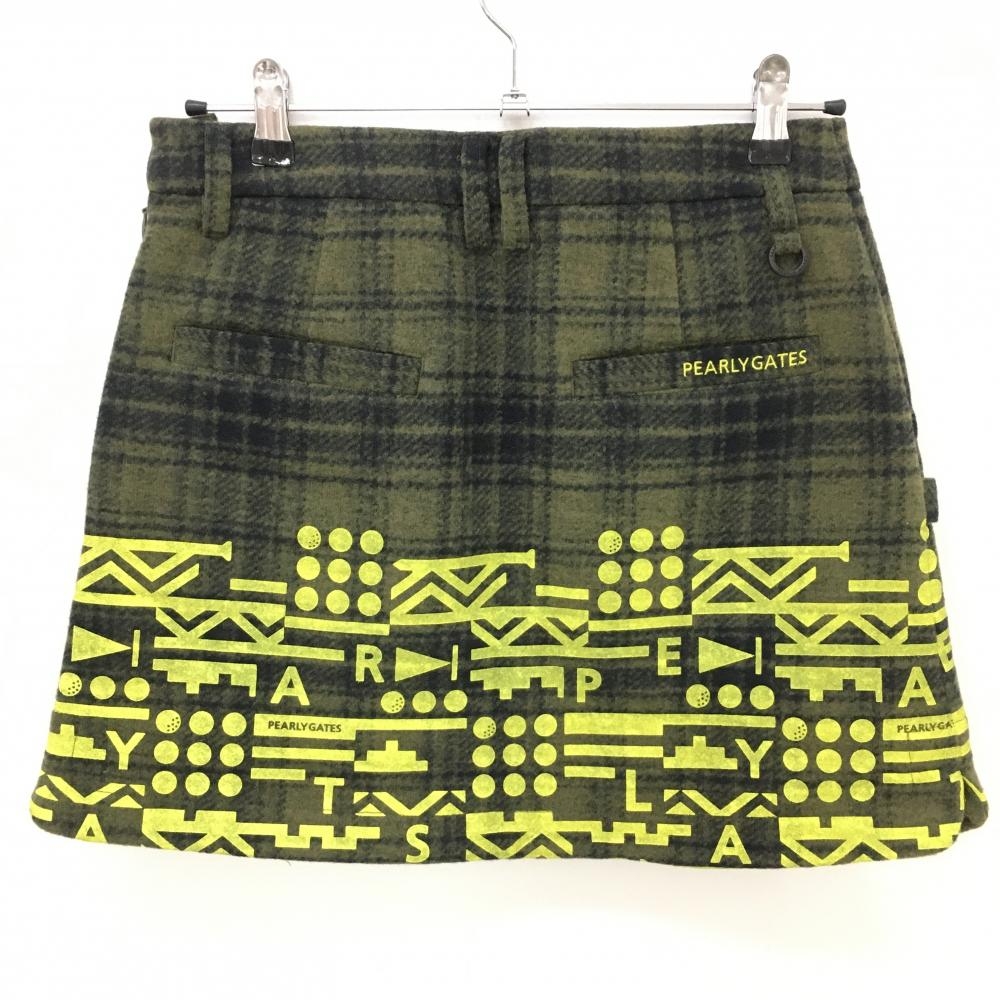 【新品】パーリーゲイツ スカート カーキ×イエロー チェック 表起毛 下部プリント レディース 1(M) ゴルフウェア PEARLY GATES