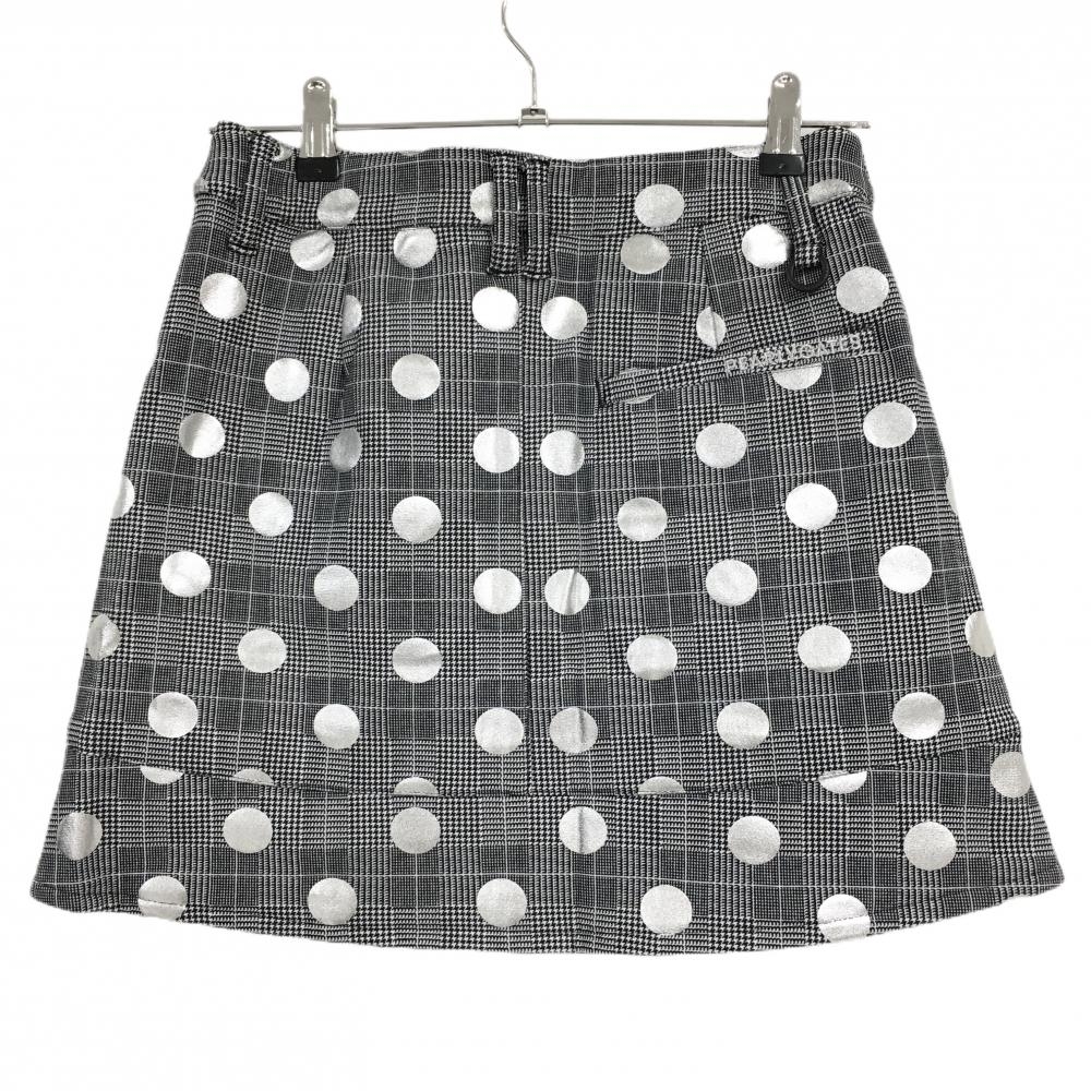 【新品】パーリーゲイツ スカート 黒×白×シルバー ドット柄 チェック 裏微起毛 レディース 0(S) ゴルフウェア PEARLY GATES