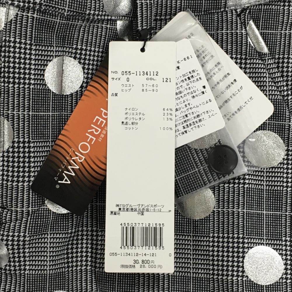 【新品】パーリーゲイツ スカート 黒×白×シルバー ドット柄 チェック 裏微起毛 レディース 0(S) ゴルフウェア PEARLY GATES