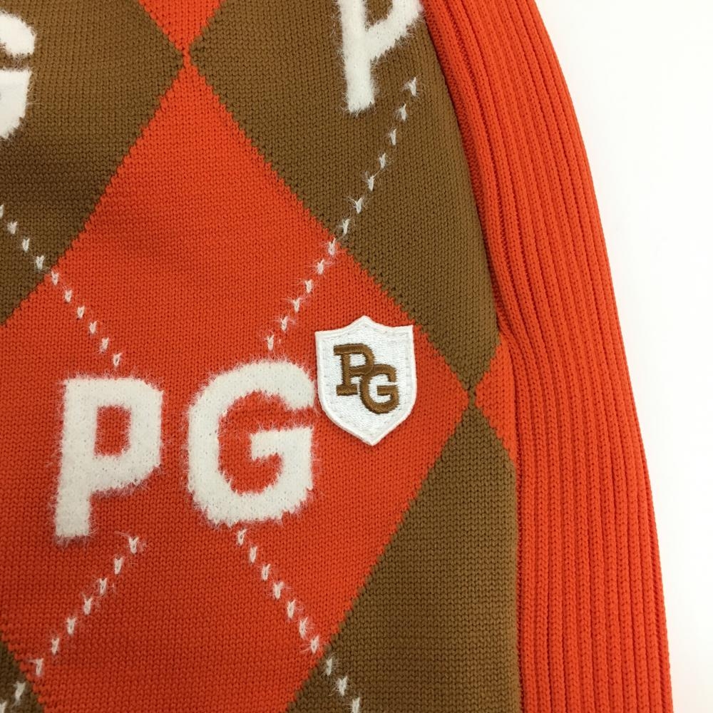 【新品】パーリーゲイツ ニットスカート オレンジ×ブラウン アーガイル柄 ロゴ ウエストゴム レディース 0(S) ゴルフウェア PEARLY GATES