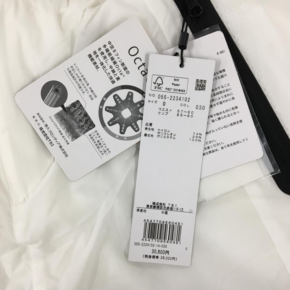 【新品】パーリーゲイツ 中綿スカート 白×黒 サイドプリーツ 裏地メッシュ ロゴプリント レディース 0(S) ゴルフウェア PEARLY GATES