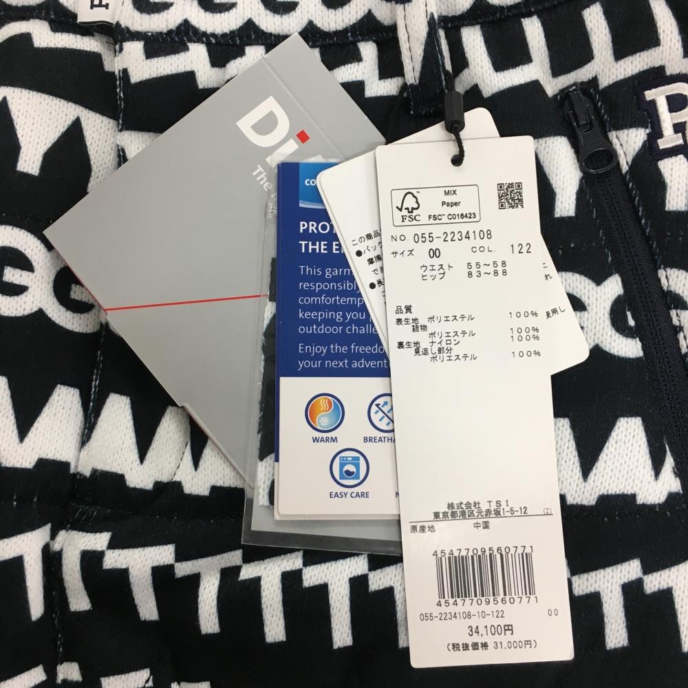 【新品】パーリーゲイツ 中綿スカート ダークネイビー×白 英字総柄 下部キルティング風 レディース 00(XS) ゴルフウェア PEARLY GATES