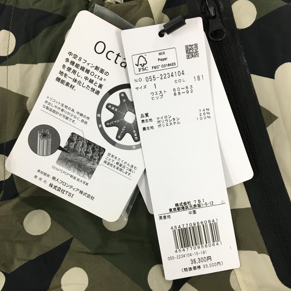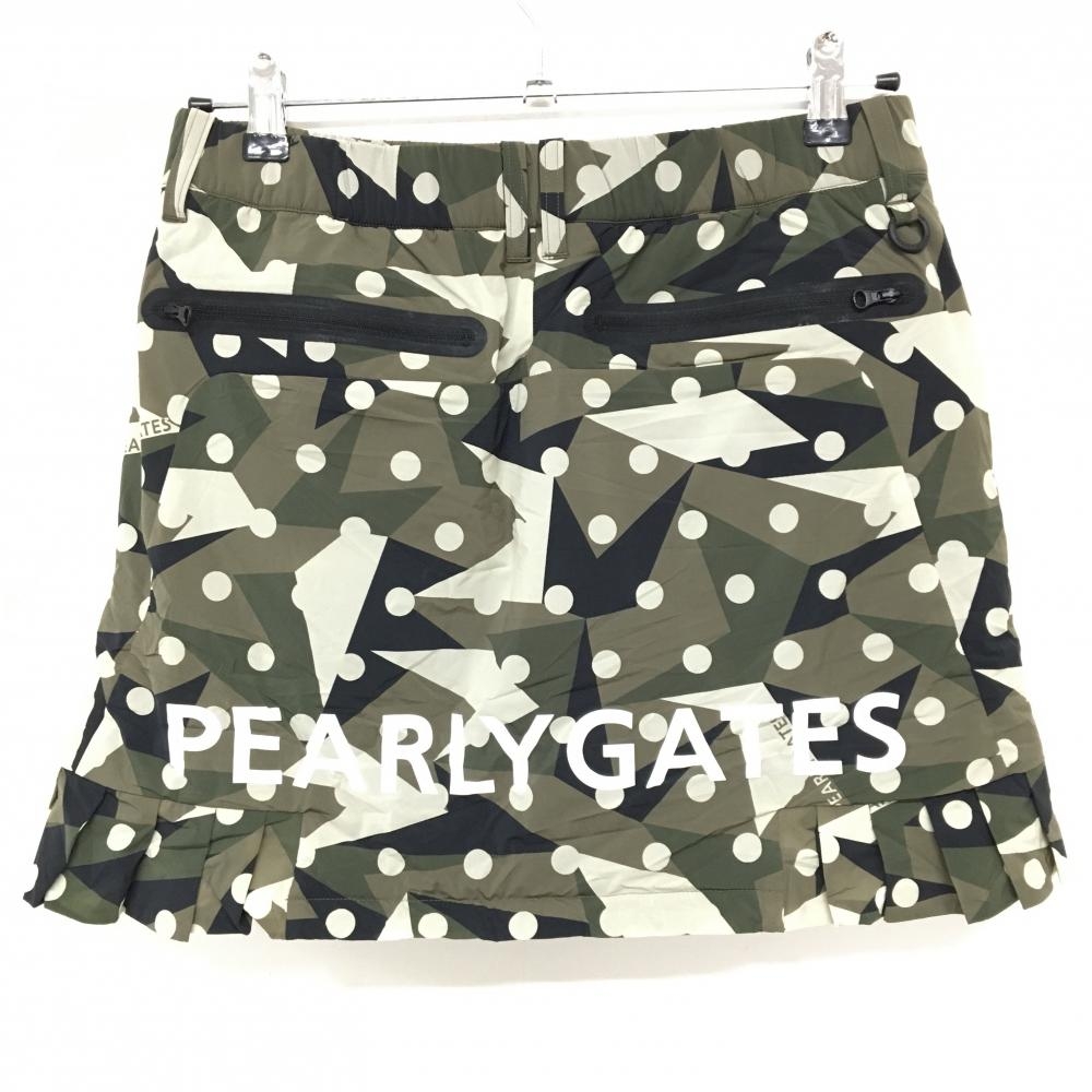 【新品】パーリーゲイツ 中綿スカート カーキ×黒 ドット柄 カモフラ風 サイドプリーツ レディース 1(M) ゴルフウェア PEARLY GATES