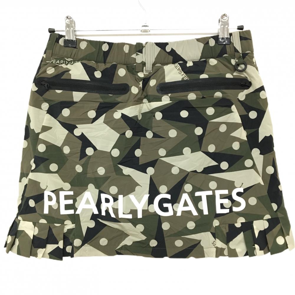 【新品】パーリーゲイツ 中綿スカート カーキ×黒 ドット柄 カモフラ風 サイドプリーツ レディース 1(M) ゴルフウェア PEARLY GATES