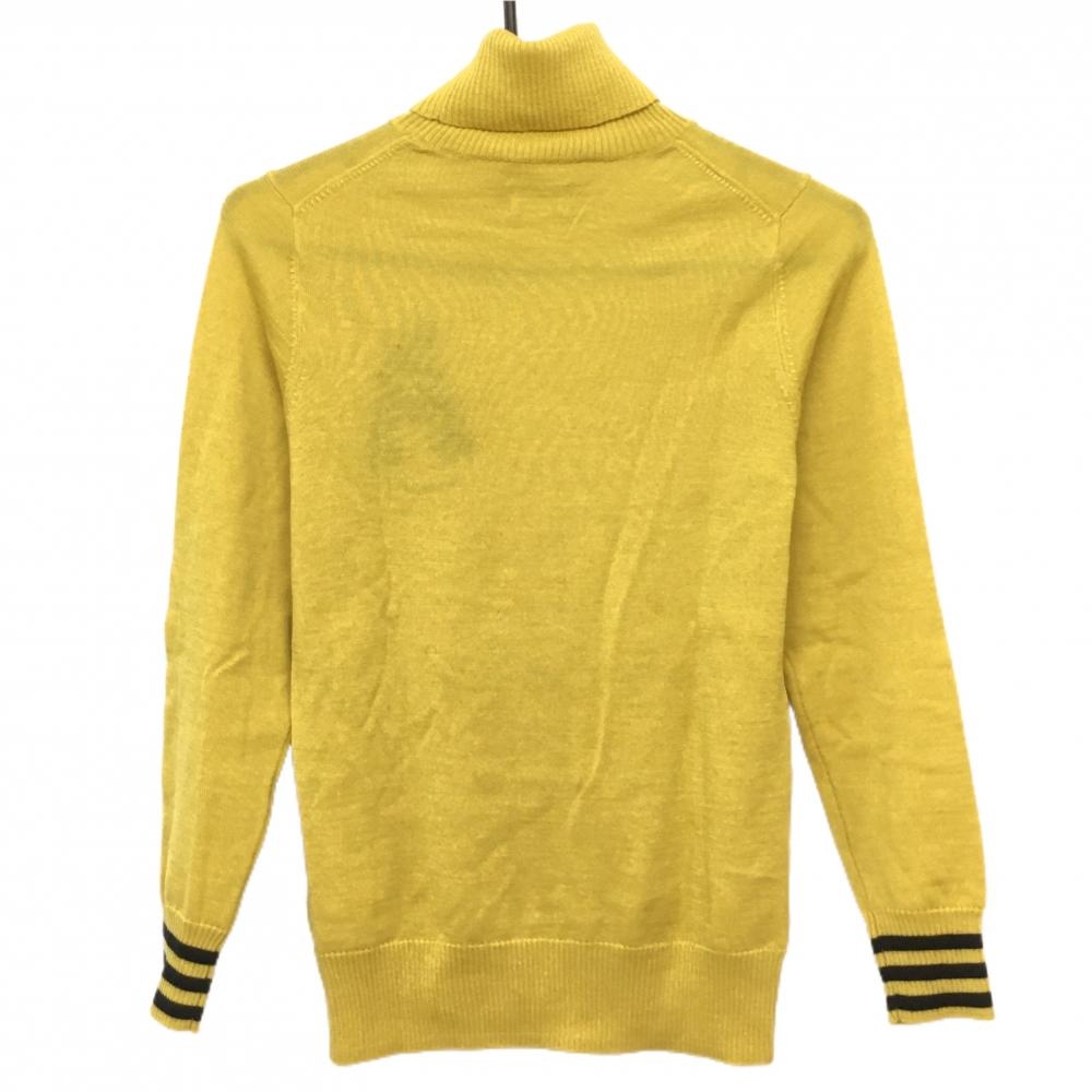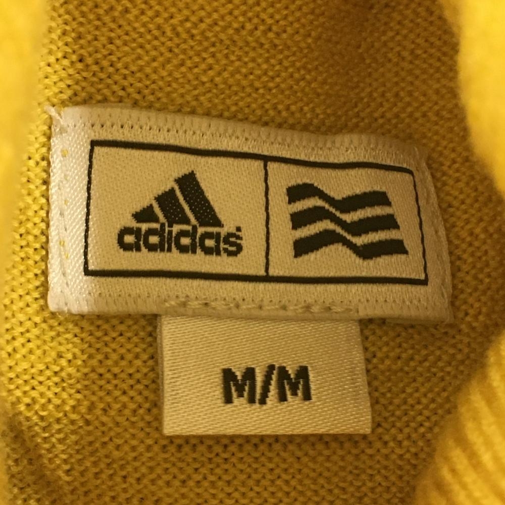 【超美品】アディダス タートルネックセーター イエロー×黒 ウール混 ニット 胸元ロゴ レディース M/M ゴルフウェア adidas