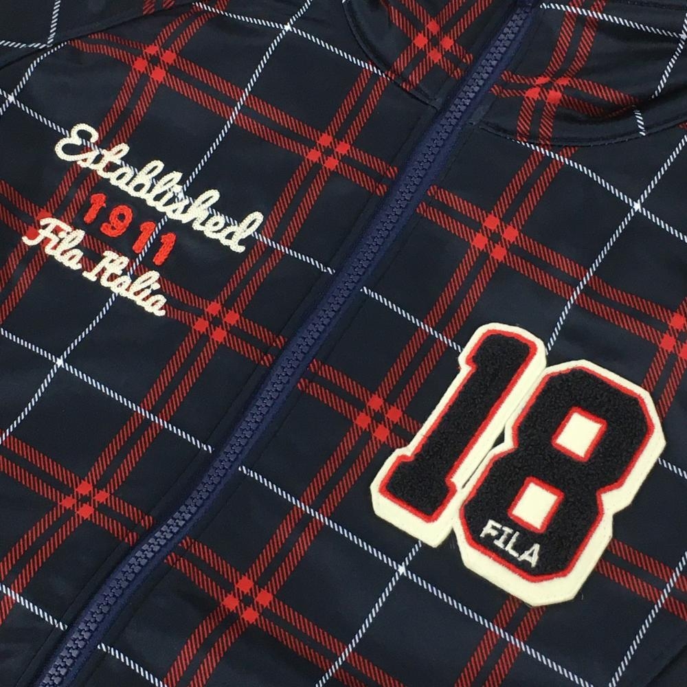 【美品】フィラゴルフ ジャケットブルゾン ネイビー×レッド×白 チェック 裏起毛 レディース M ゴルフウェア FILA GOLF